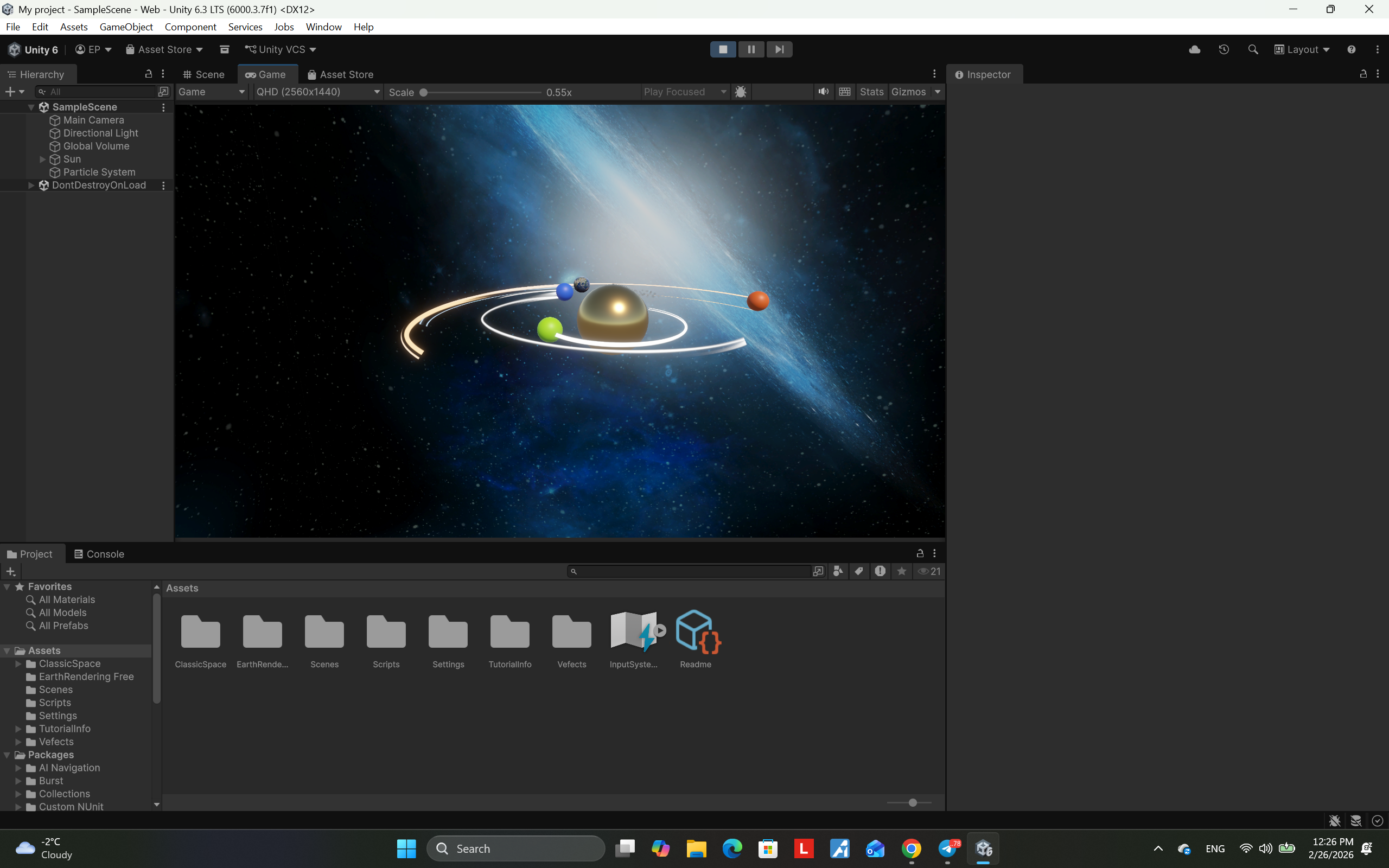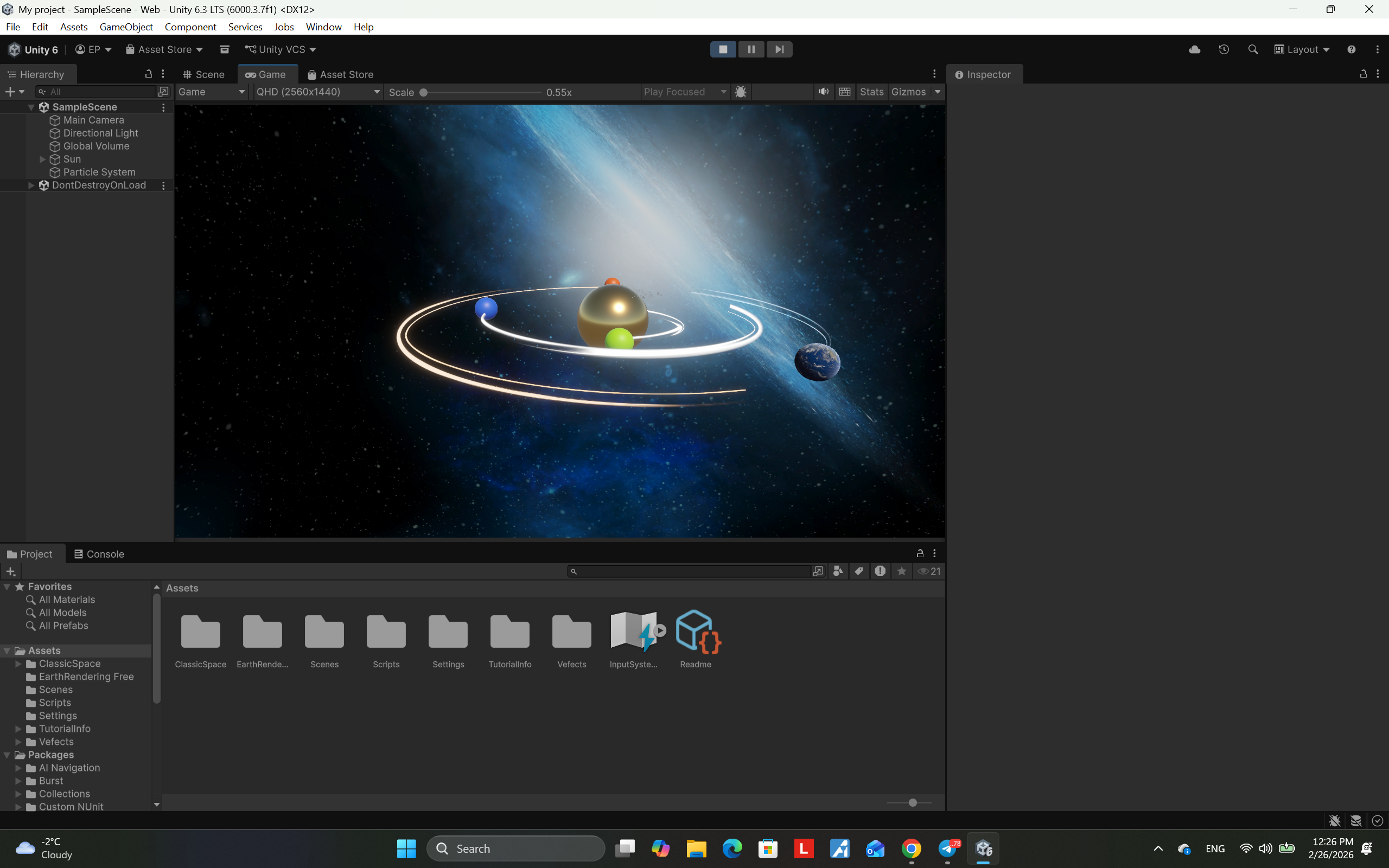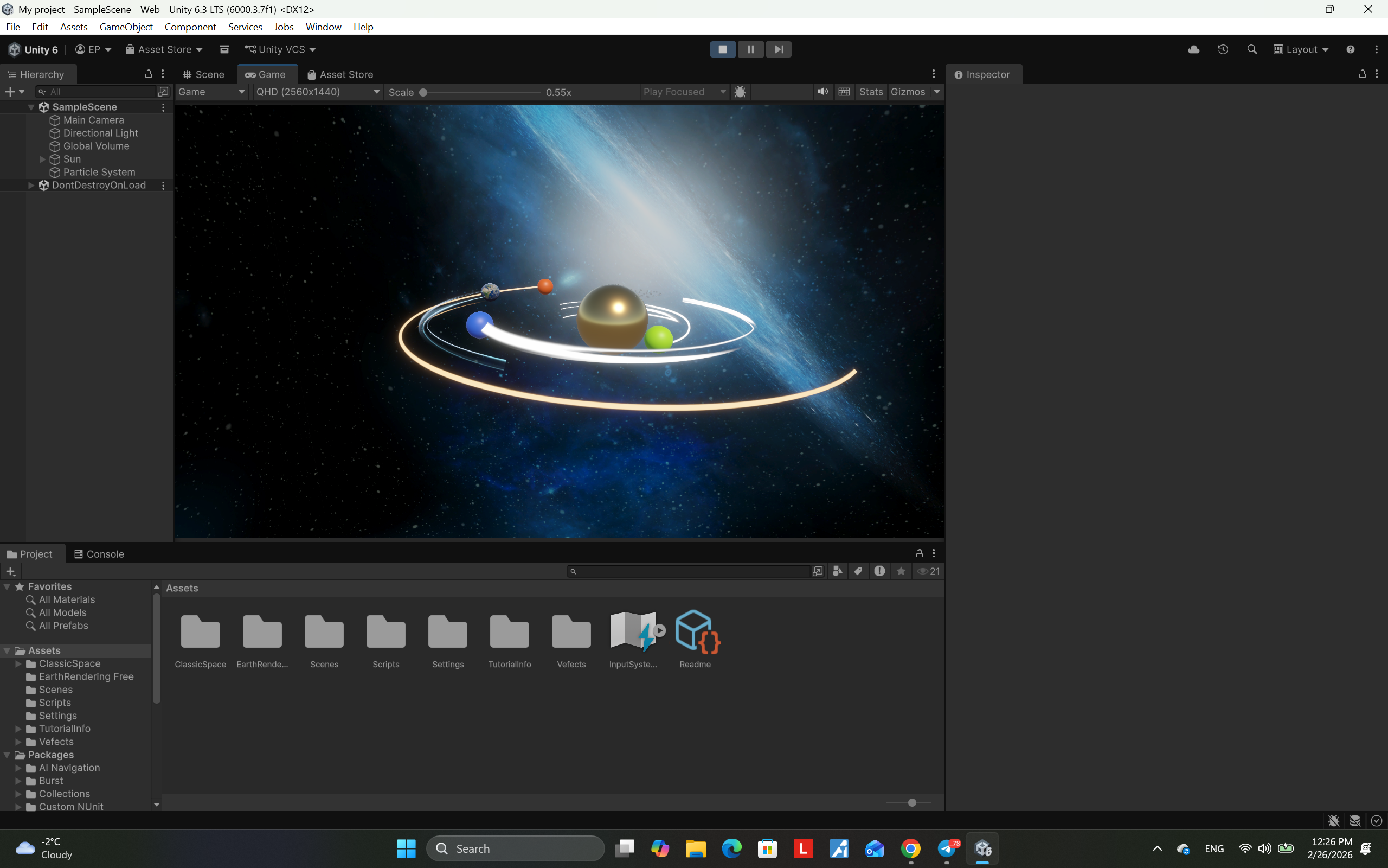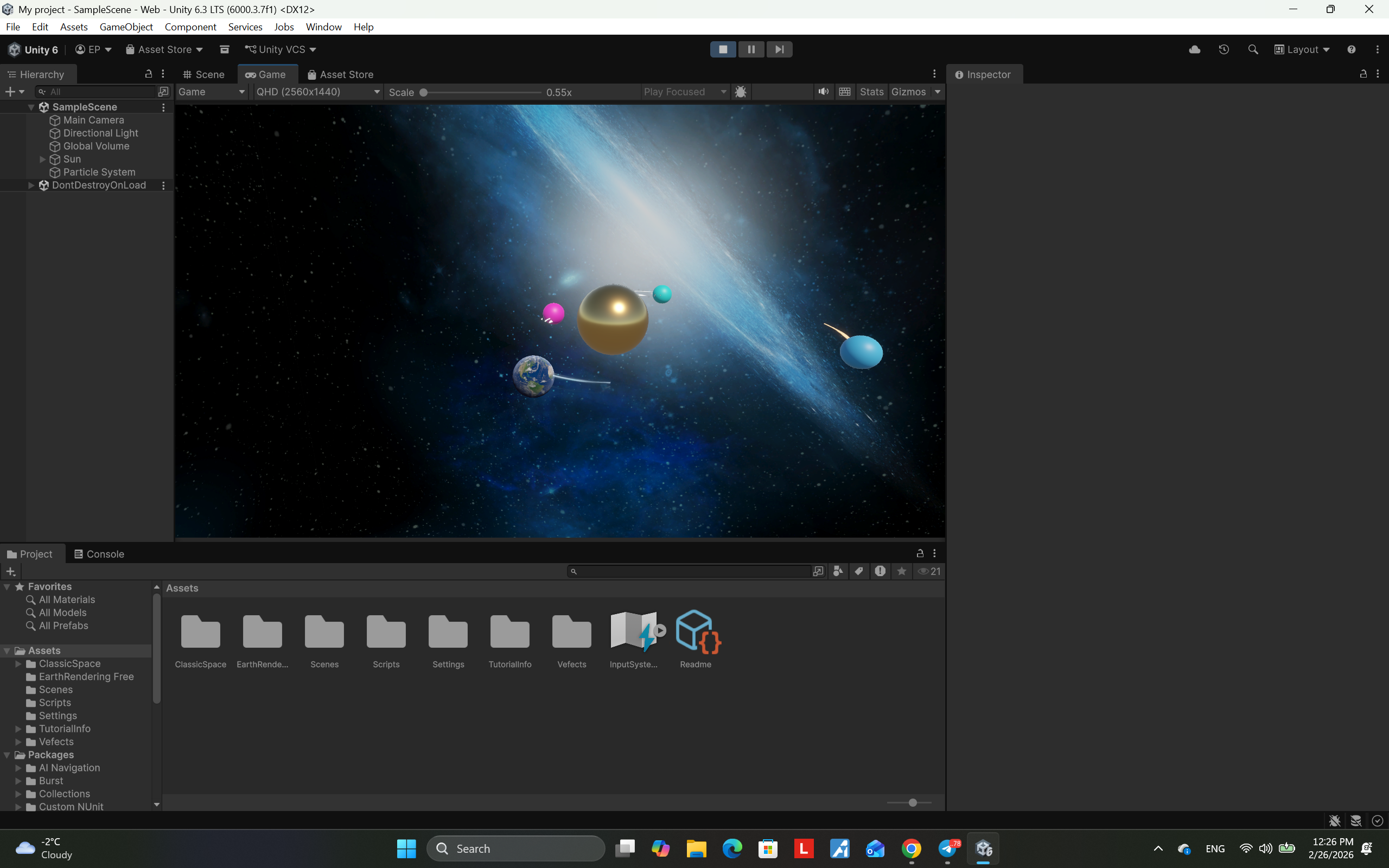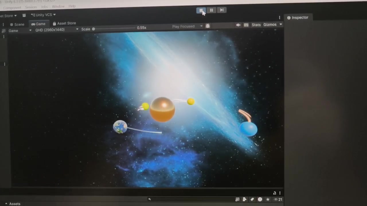 A 3D solar system simulation created in Unity, demonstrating planetary rotation, orbital motion, and basic space physics.