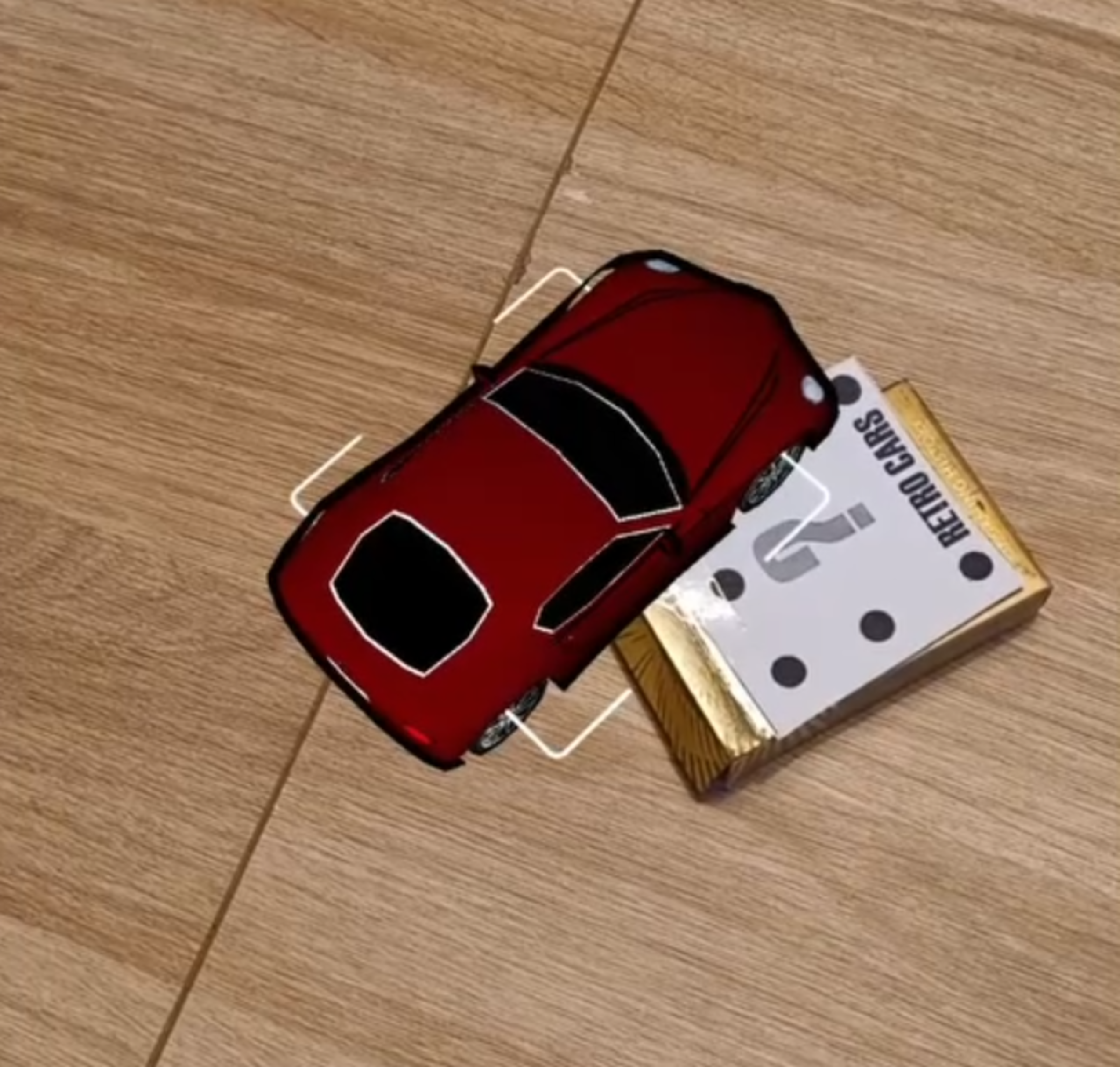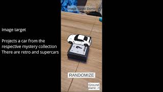 Using augmented reality and Vuforia image targeting, the application allows users to preview the contents of two collections: Supercars and Retro Cars. By scanning the corresponding image, users can view a 3D model of a car that could be included in the mystery box.