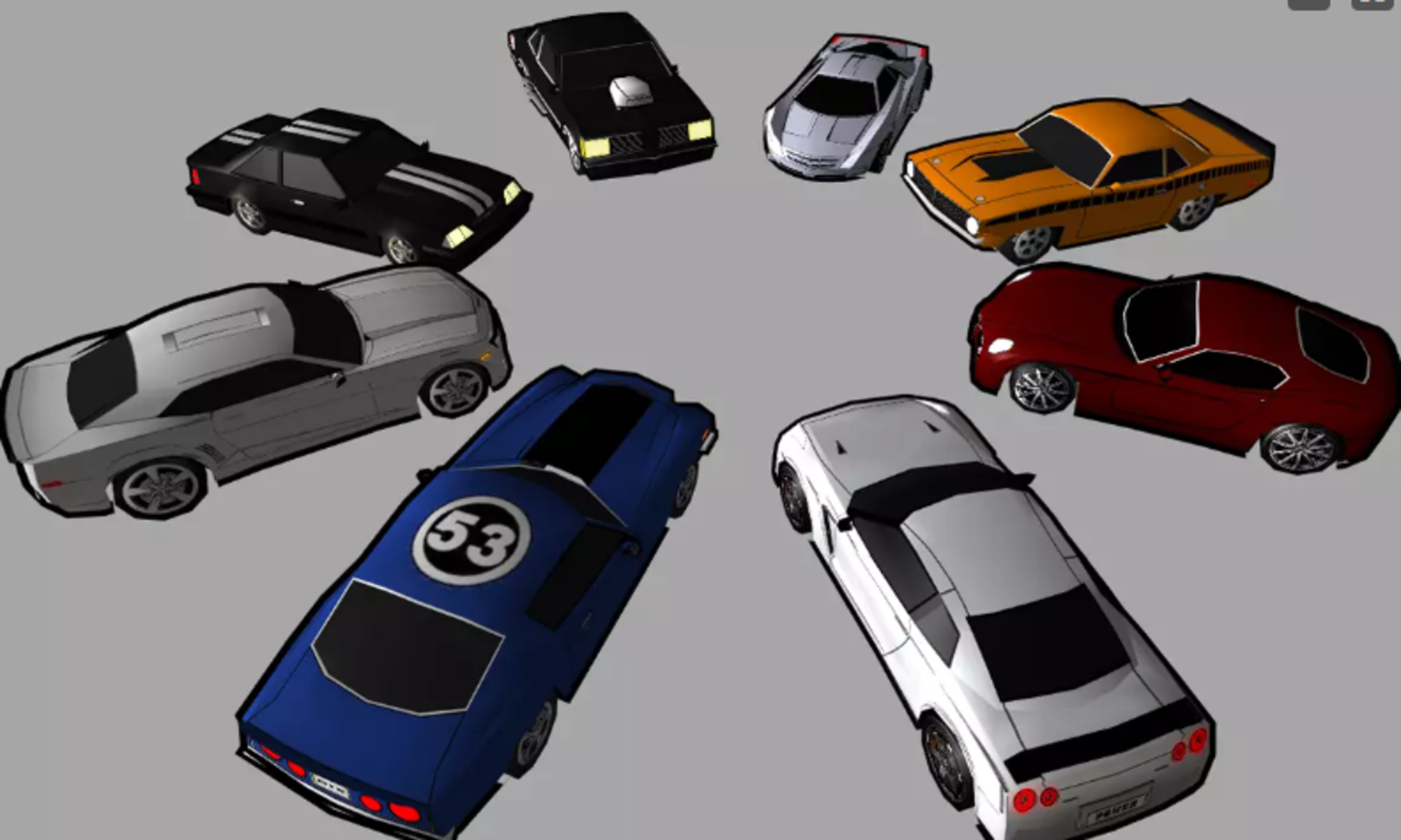 Car assets: https://assetstore.unity.com/packages/3d/vehicles/land/racing-cars-pack-1-2195
