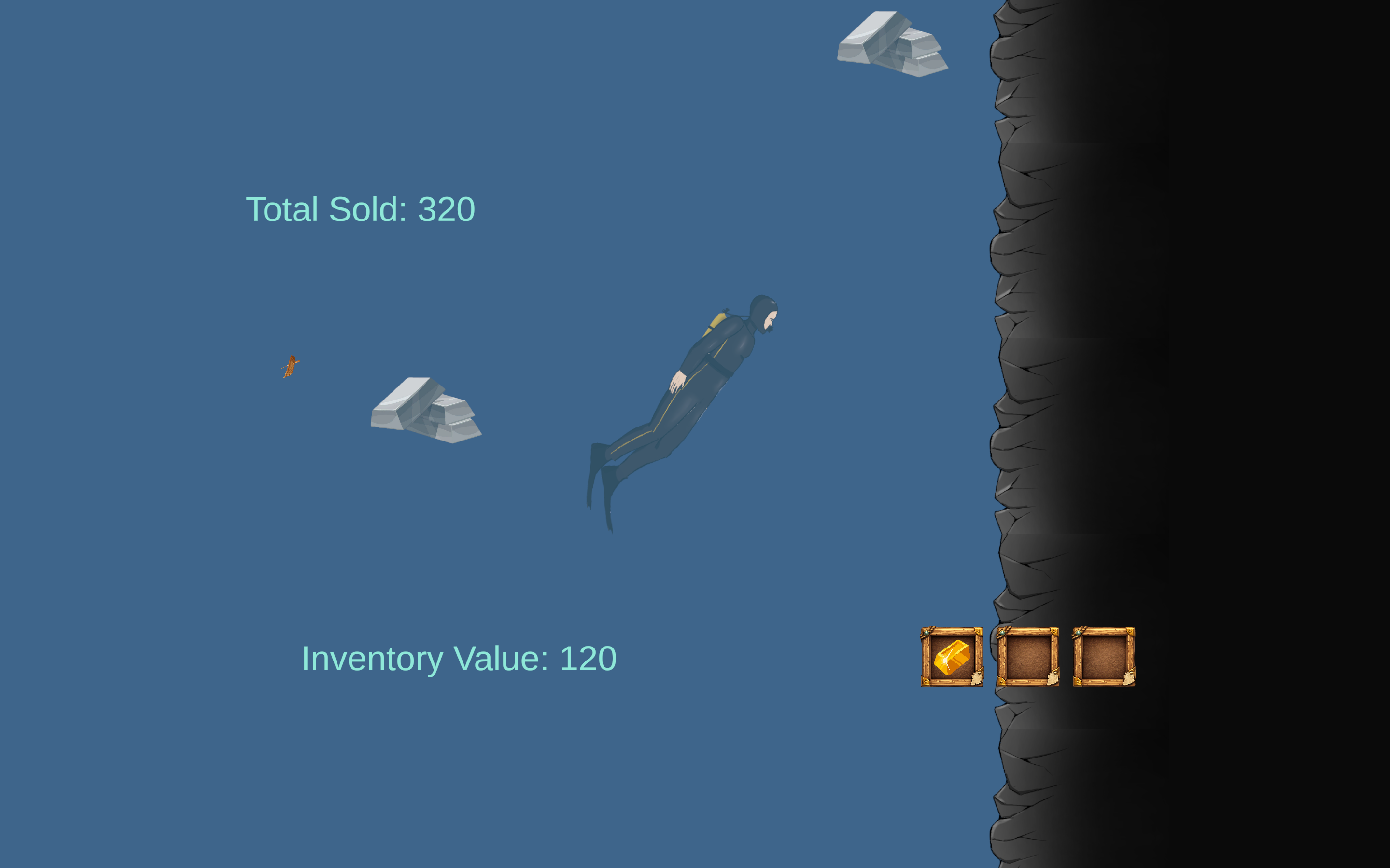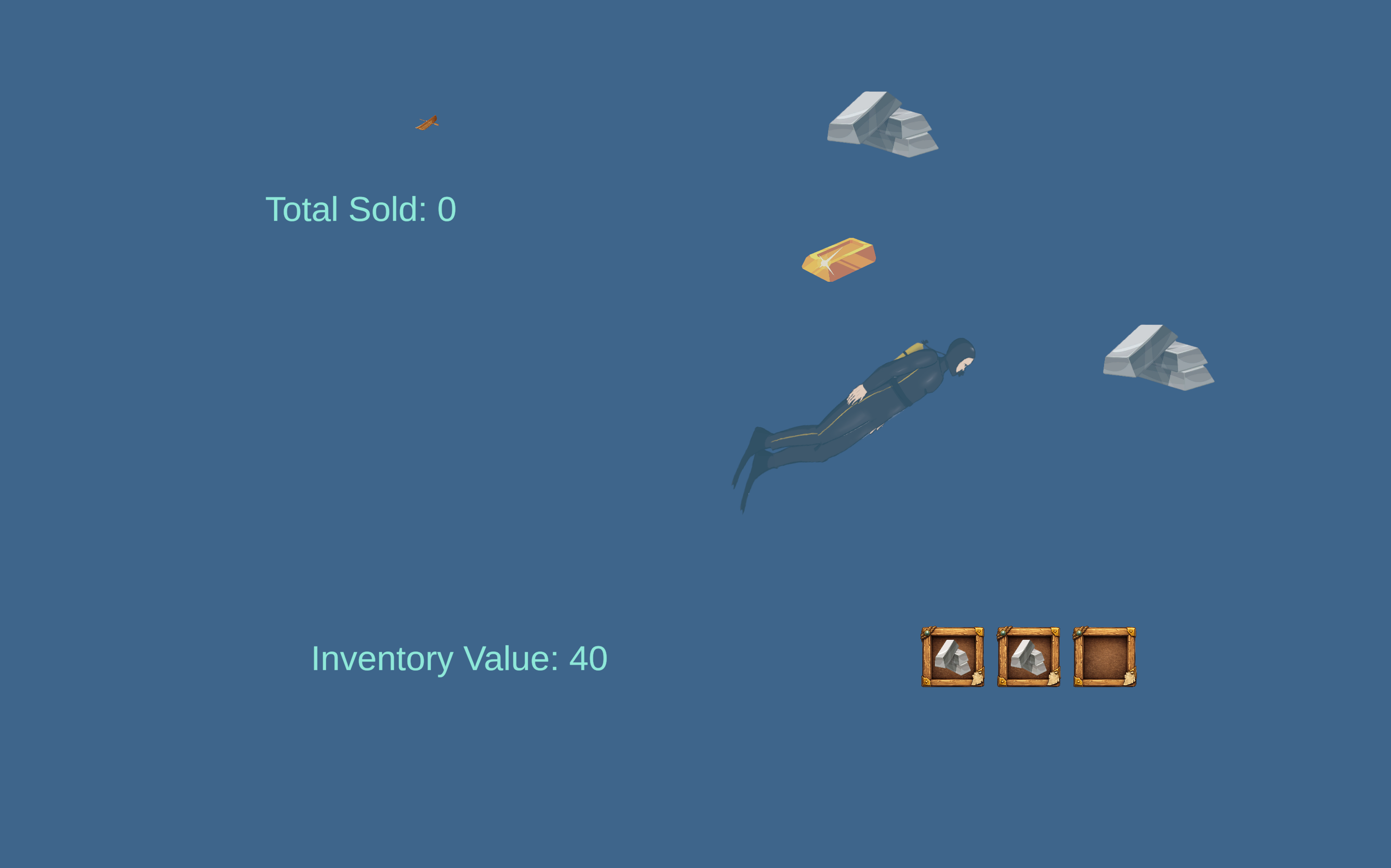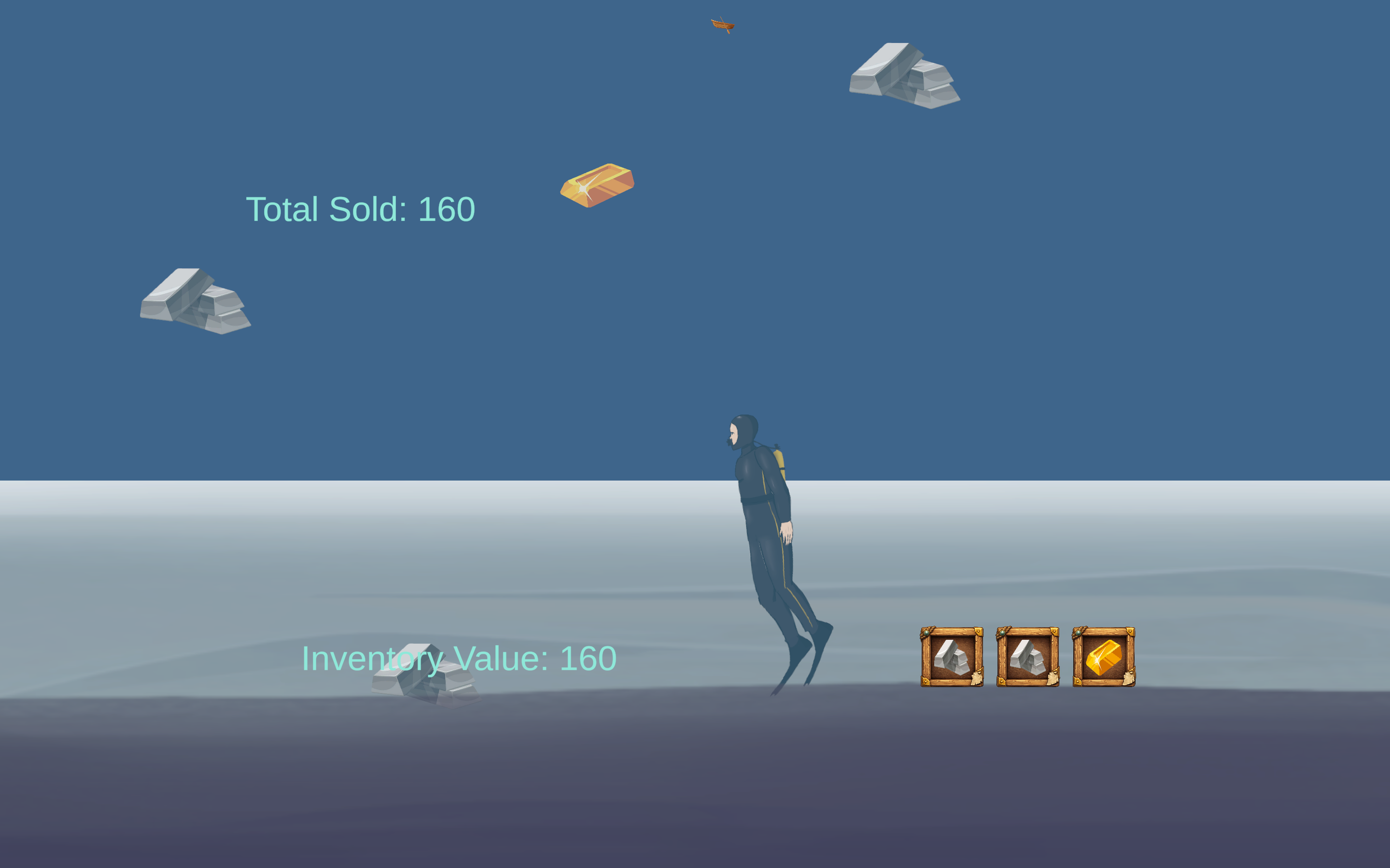 You play as a diver, collecting gold and silver in the ocean. Collect metals and dispose at the boat to stack up cash.