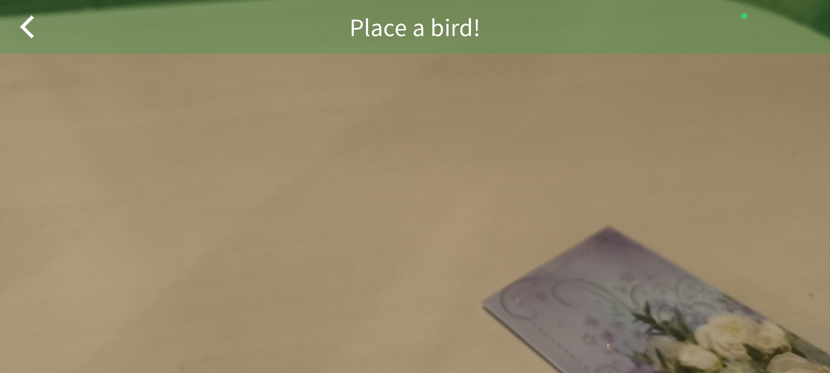 The app features a built-in mini-game where users interact with an AR sparrow. By feeding the bird seeds, the user triggers a hidden congratulatory message.