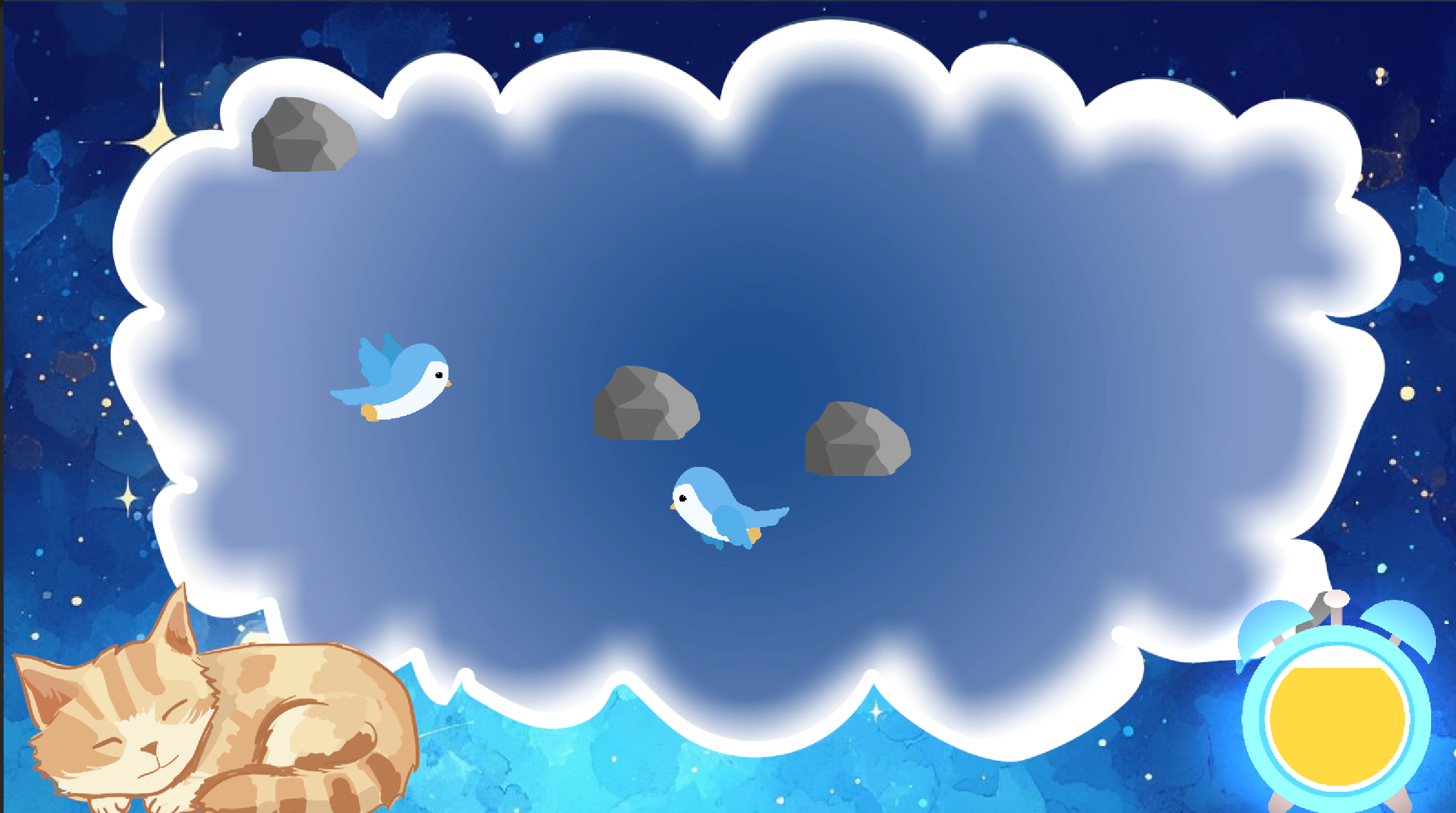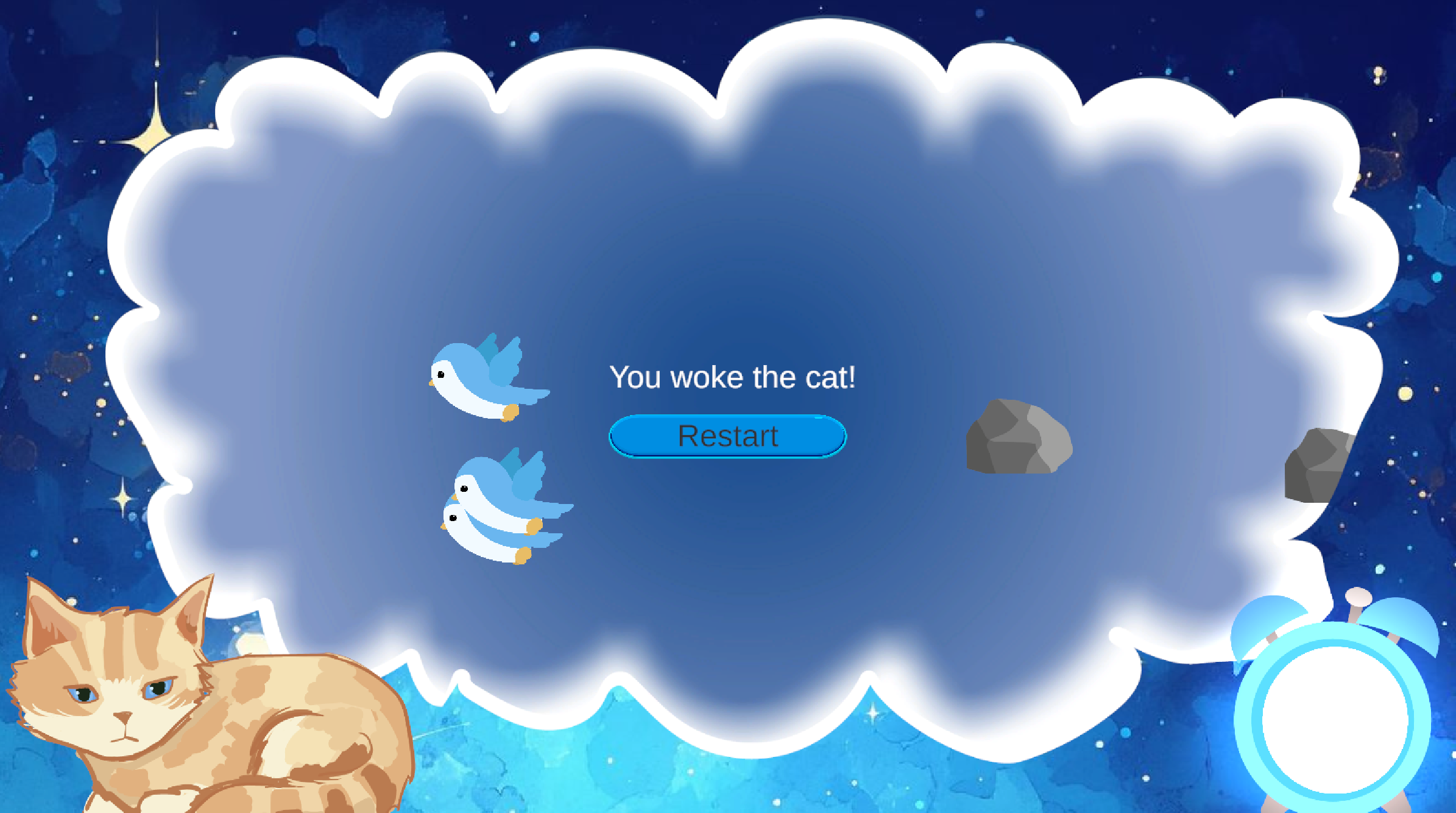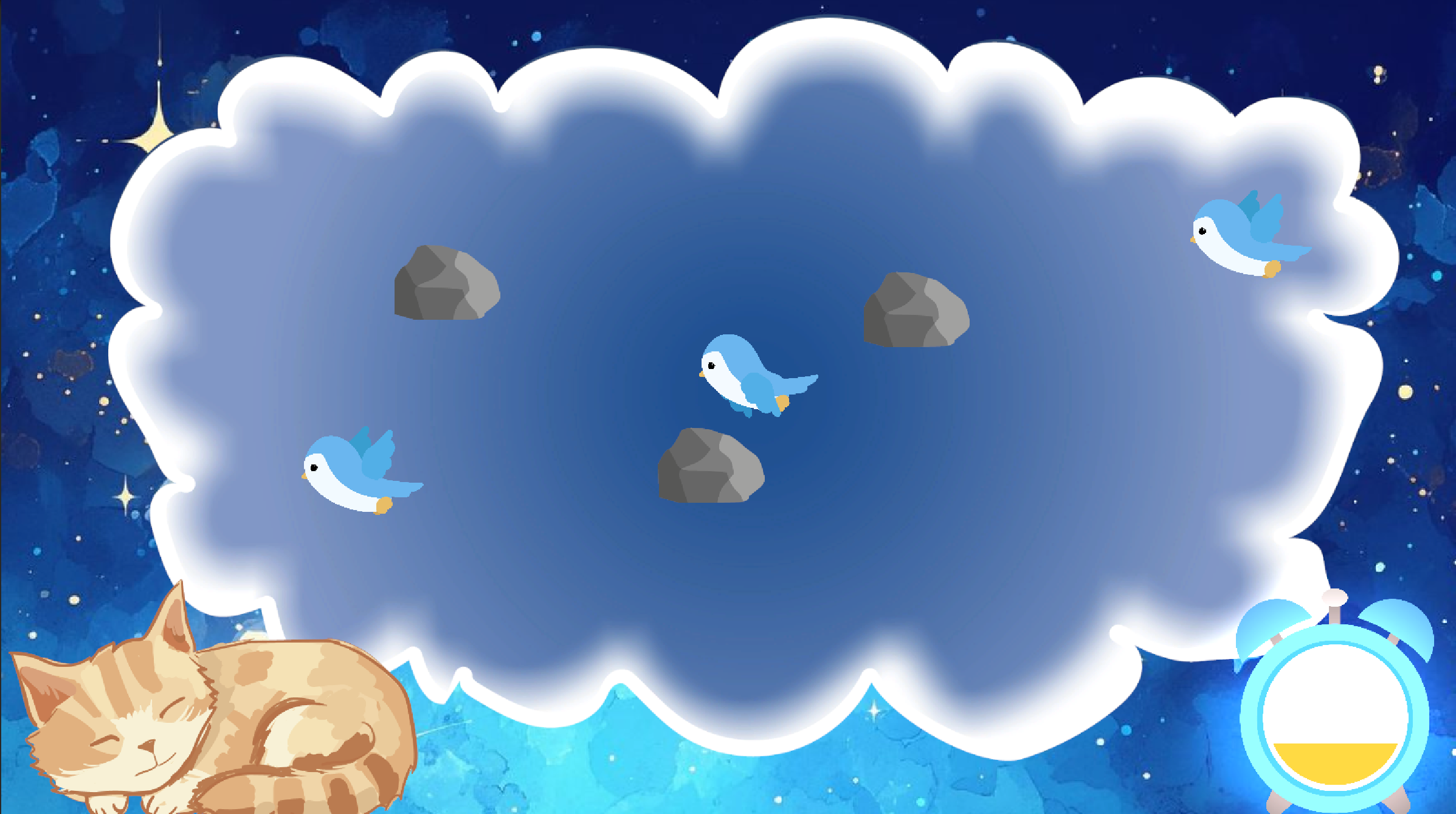 Catch the birds before they escape! Tap the flying birds to keep the dream clock full. Miss too many and the cat wakes up!
