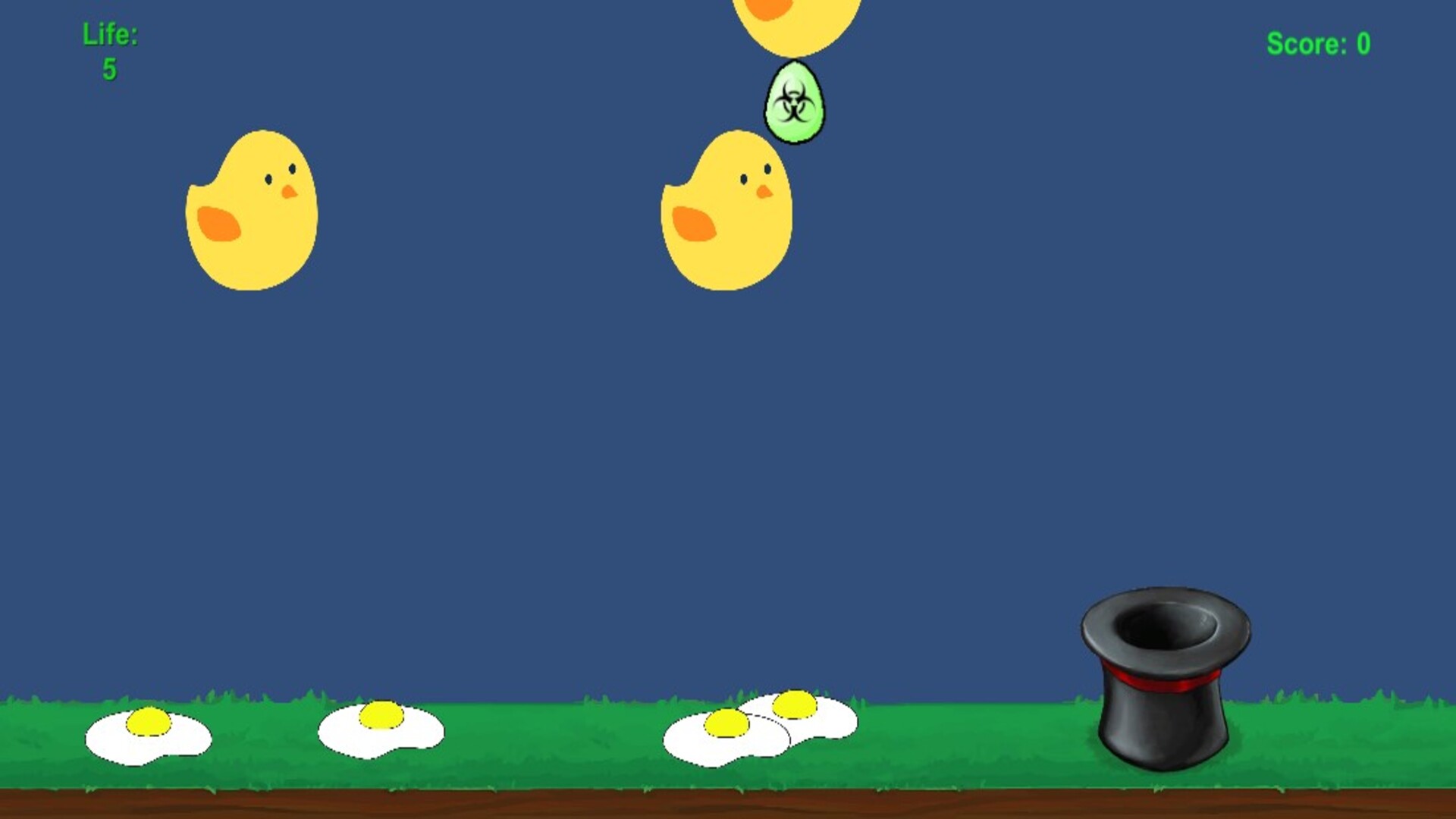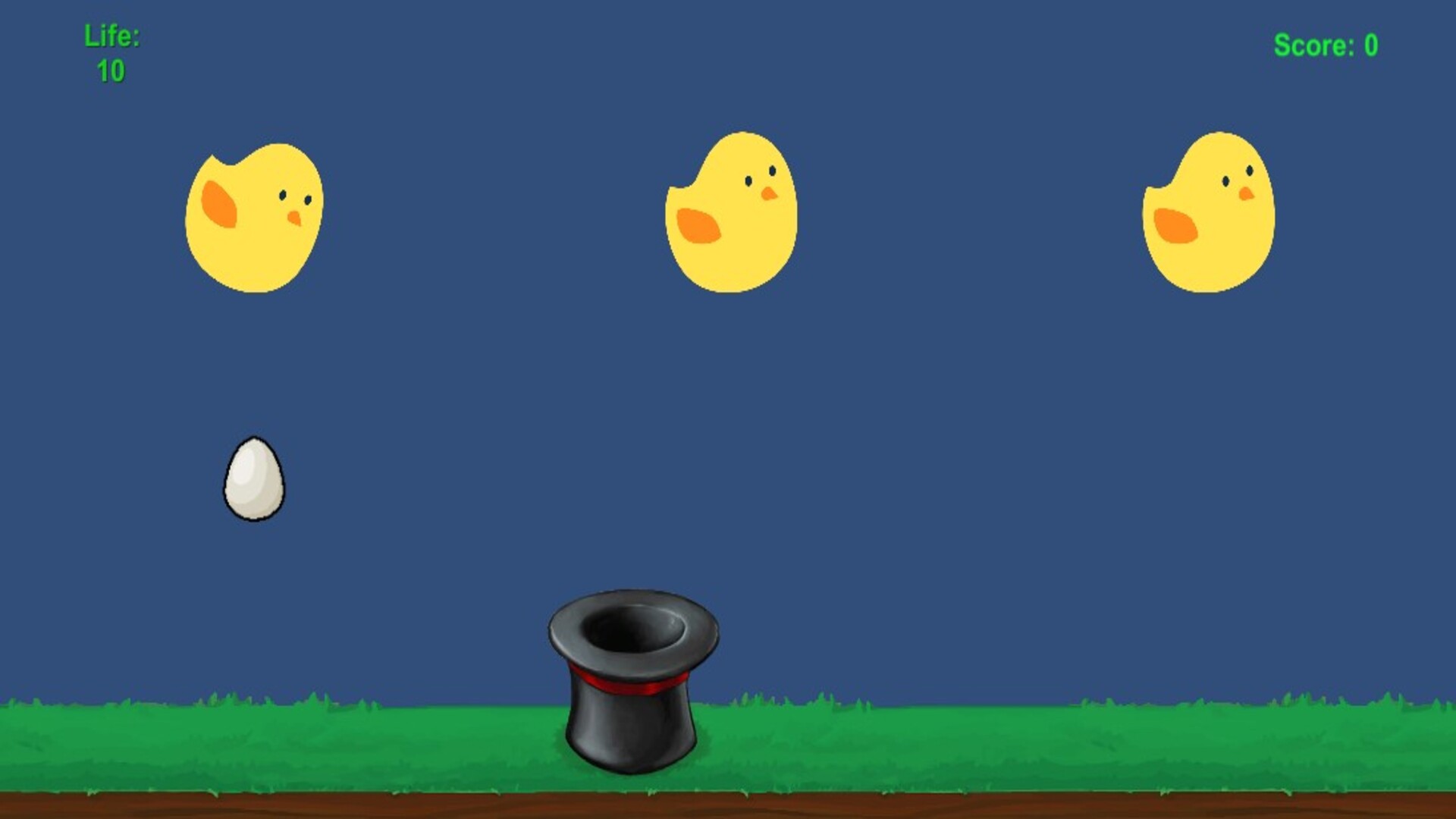 Catch the Egg is a simple and fun arcade game where eggs fall from the sky and your goal is to catch them all. Stay quick and focused — the more eggs you catch, the higher your score. A perfect game to test your reflexes and beat your high score! 🥚🎮