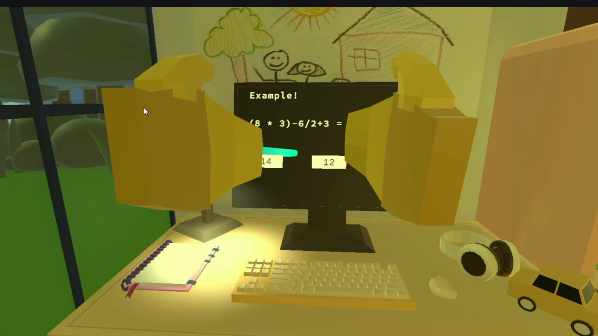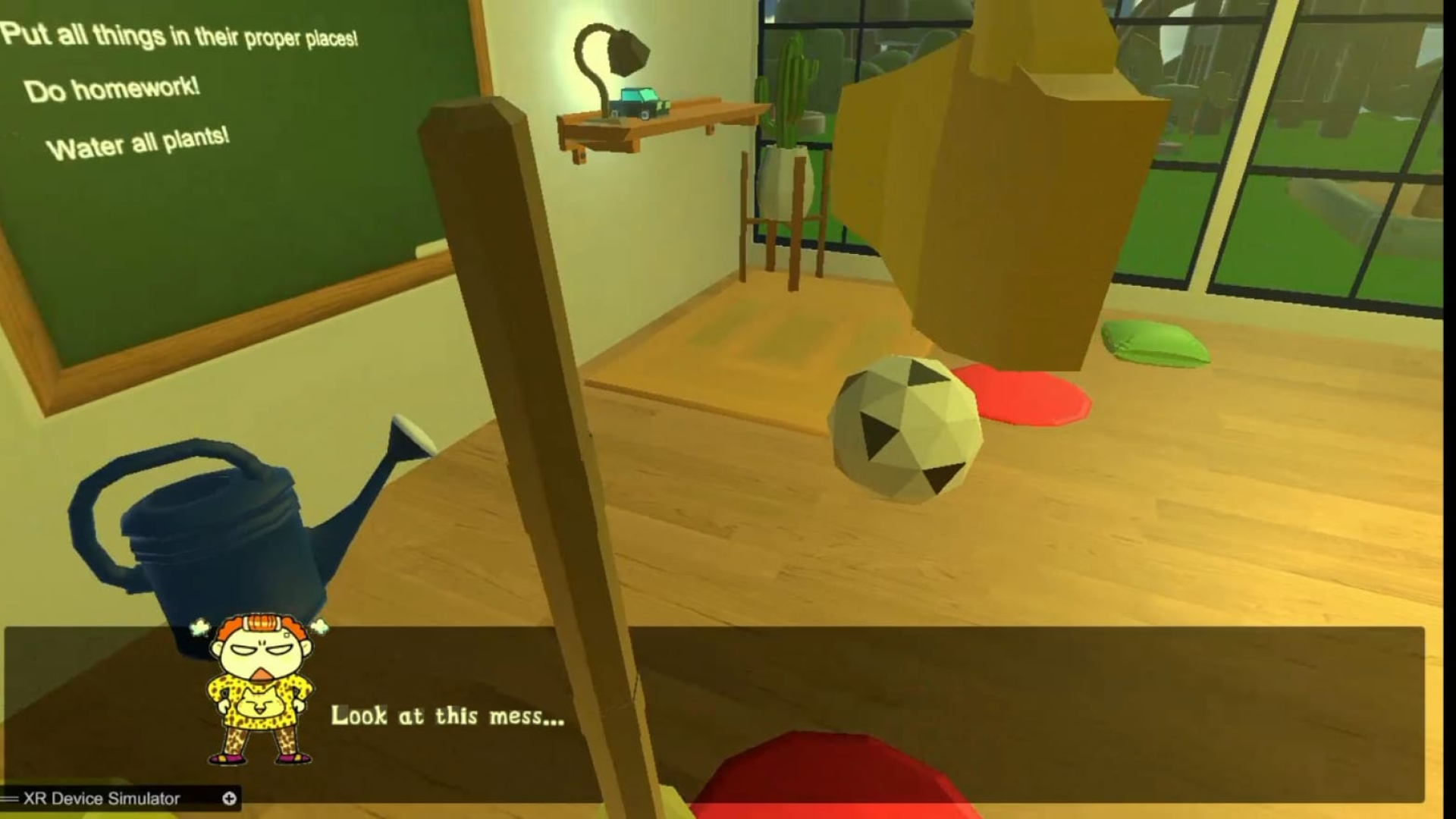 The player finds themselves in the room of a child who has been locked up for disobedience. To get out, they must complete all their household chores: neatly put away their toys, sweep the floor, do their homework, and water the flowers. The game is designed in the VR Escape Room format.