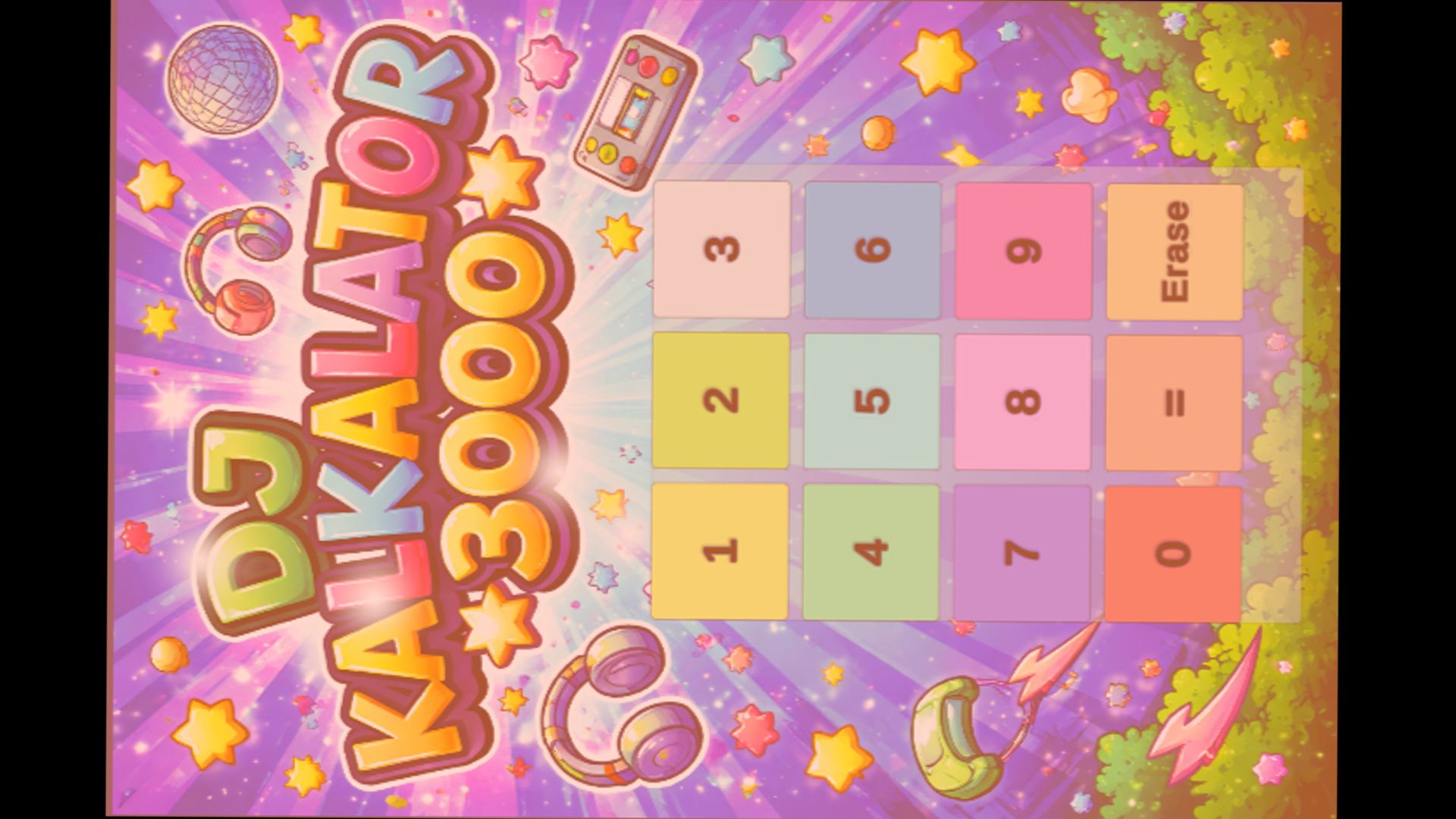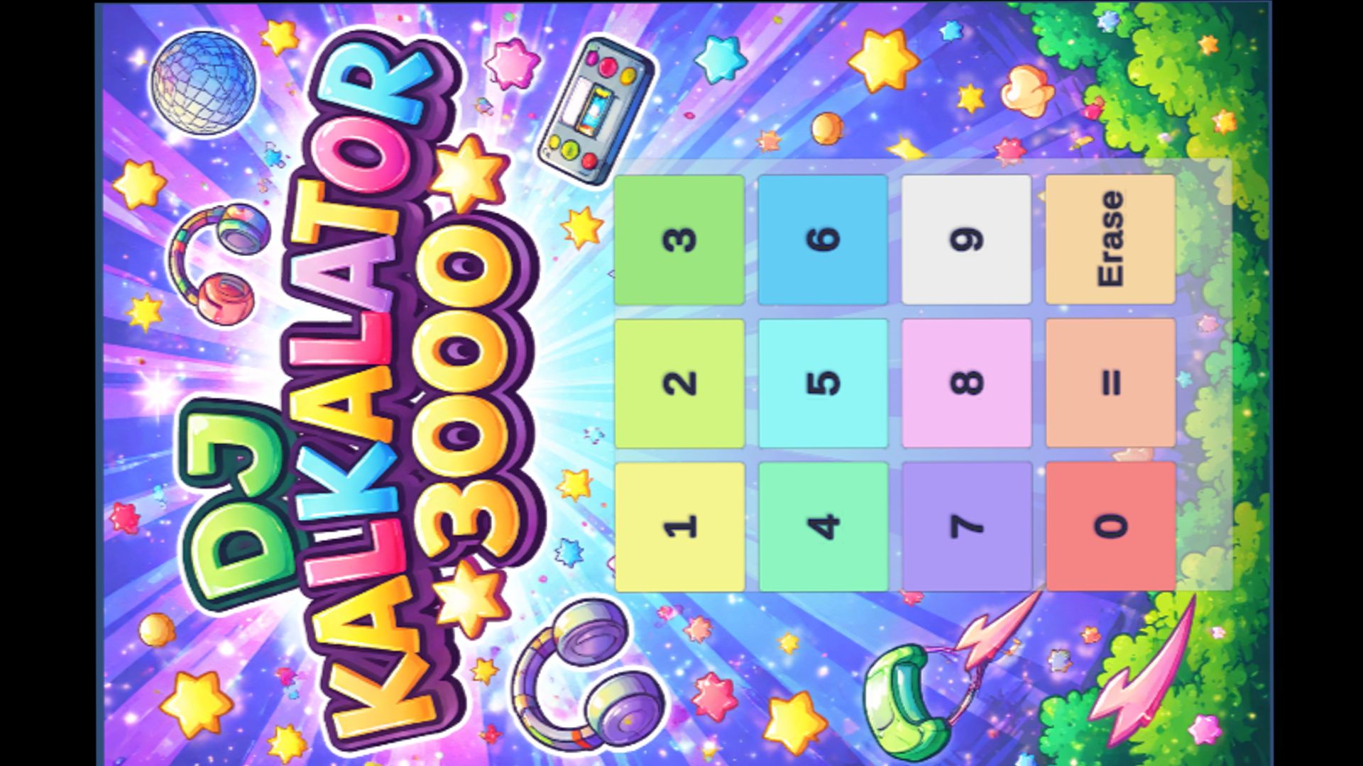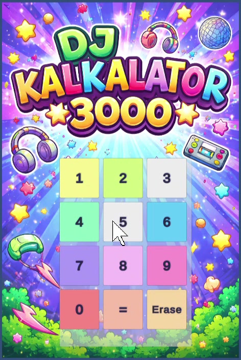 DJ Kalkulators 3000 ir interaktīvs skaņu kalkulators, kur cipari pārvēršas ritmos, efektiem un vizuālos sprādzienos. Spied pogas, miksē skaņas, maini tempu un palaid īstu digitālu “drop’u” ar = pogu.