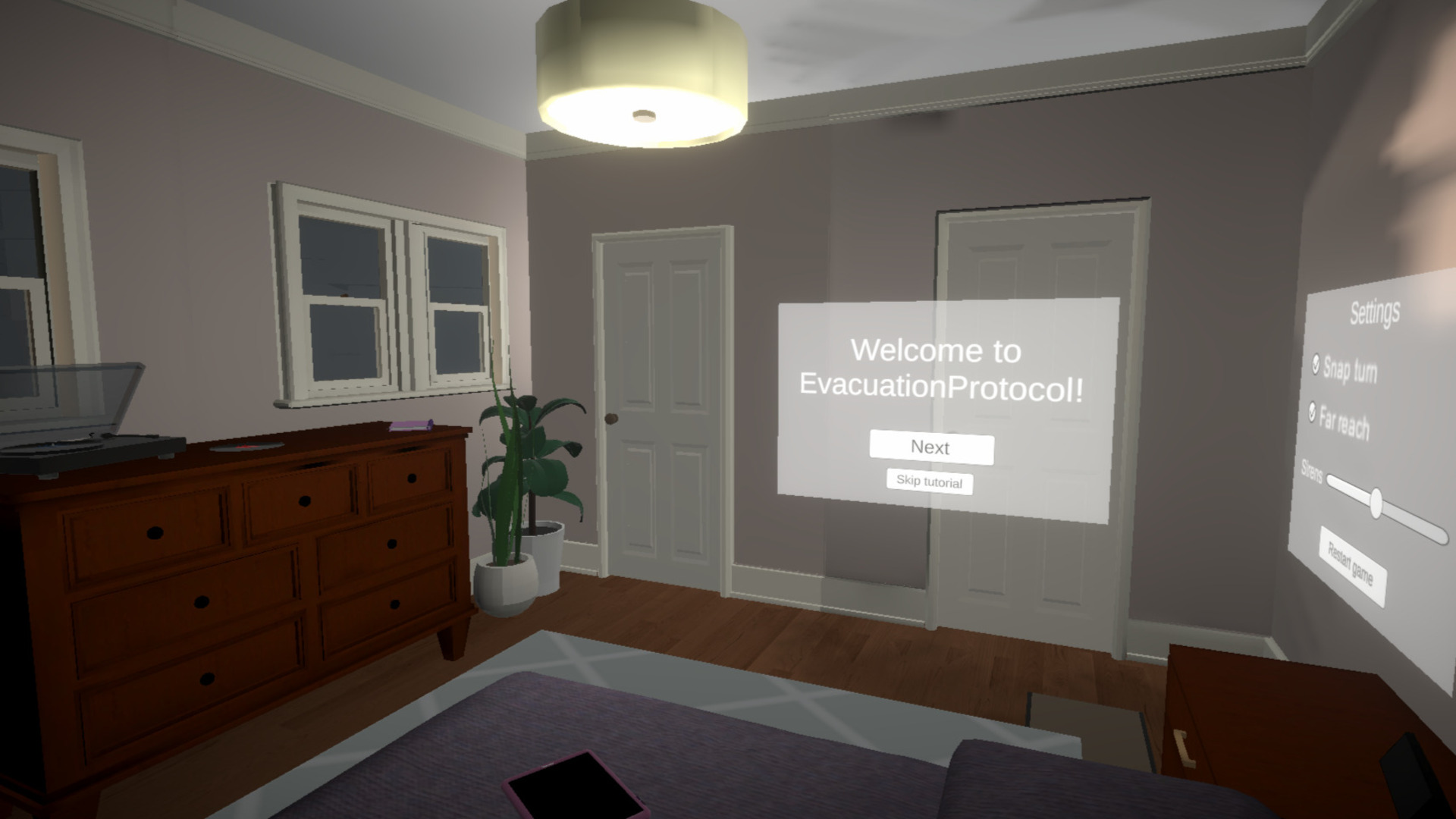Evacuation Protocol is a VR escape room that drops you into a sudden emergency. Awakened by sirens, you must search your apartment, solve multiple puzzles, and recover your keys before you can escape and evacuate.