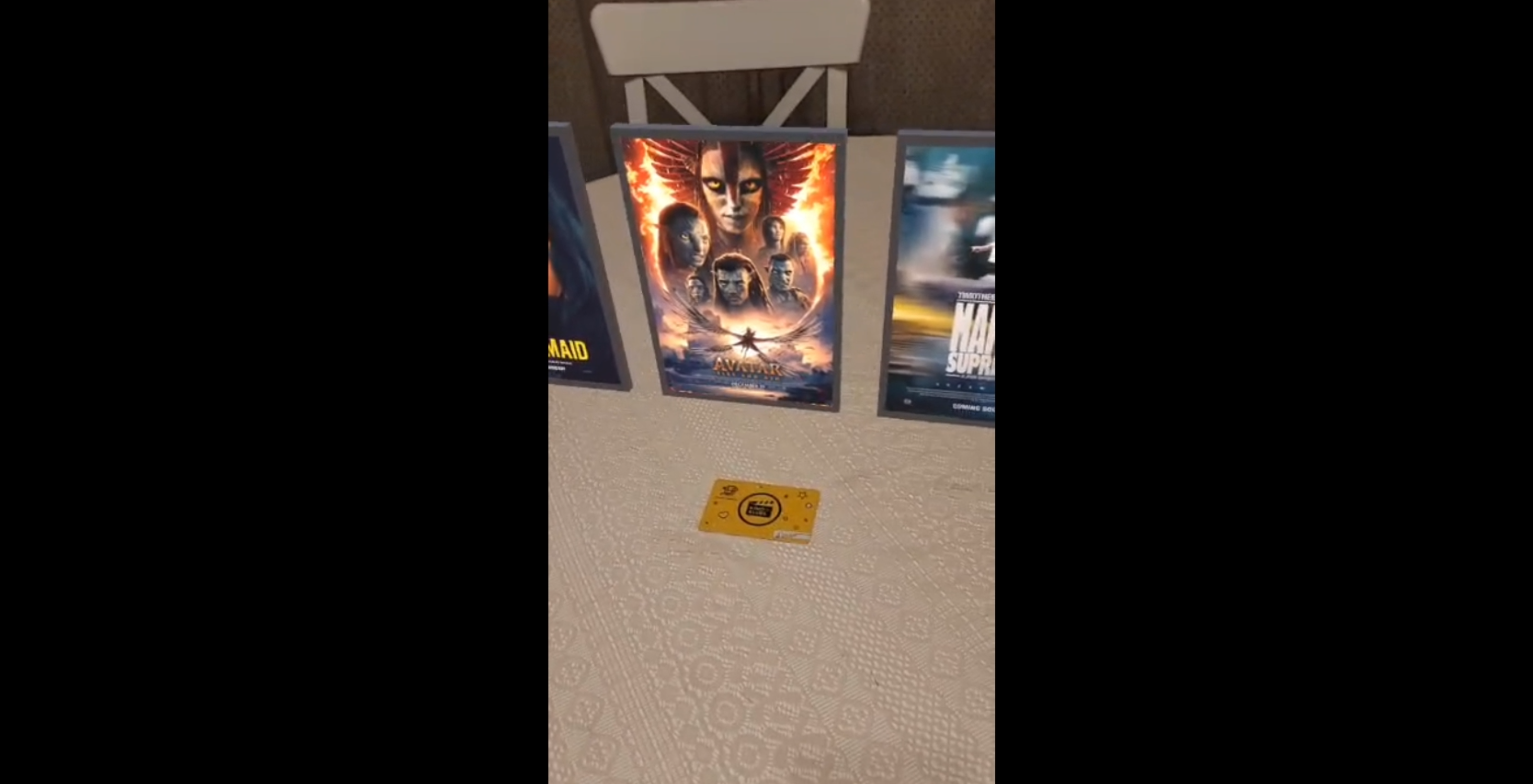 This AR application, developed in Unity using Vuforia, allows users to scan a Forum Cinemas movie club card and choose a poster of a new movie from a small curated selection. By tapping on a poster appeared on Image Target, users can place a virtual cinema screen on a real-world surface using ground plane tracking and immediately watch the selected movie trailer in an immersive AR experience. Although the current version does not connect to a live cinema website or database, it demonstrates the strong potential of this technology for future integration with real movie listings and promotional platforms, showing how engaging and intuitive movie discovery could be.