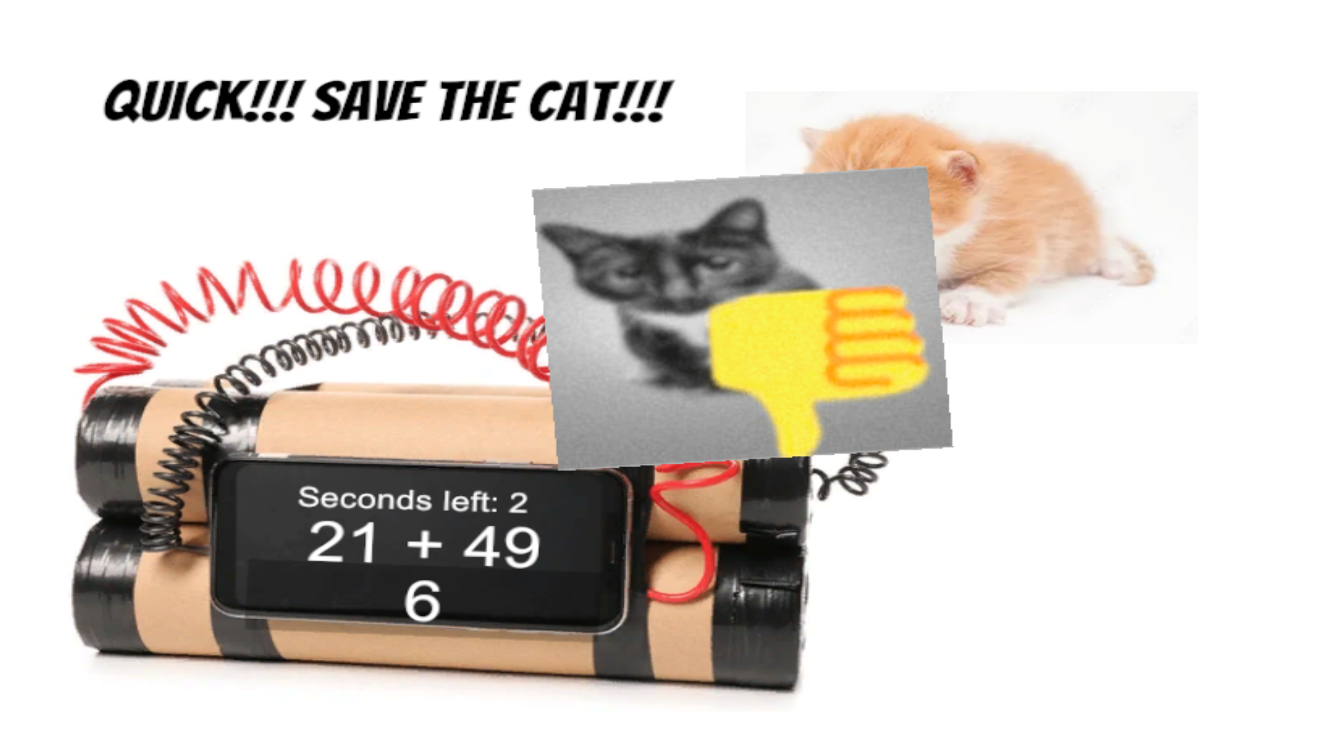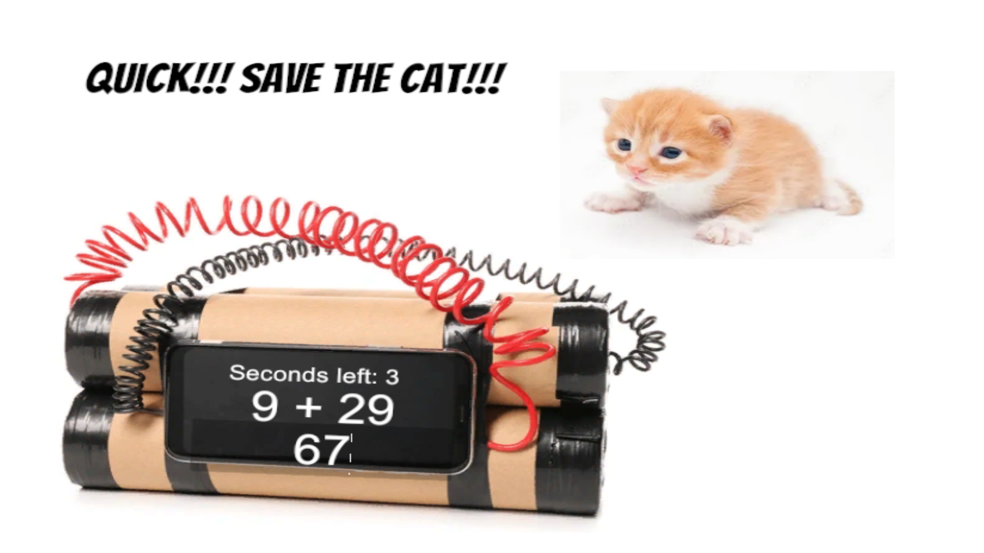 This game is about saving poor kitten from burglars… They've kidnapped the cat and strapped a bomb near it, and it's so afraid, it can't escape… Help the kitten by solving various math sequences!