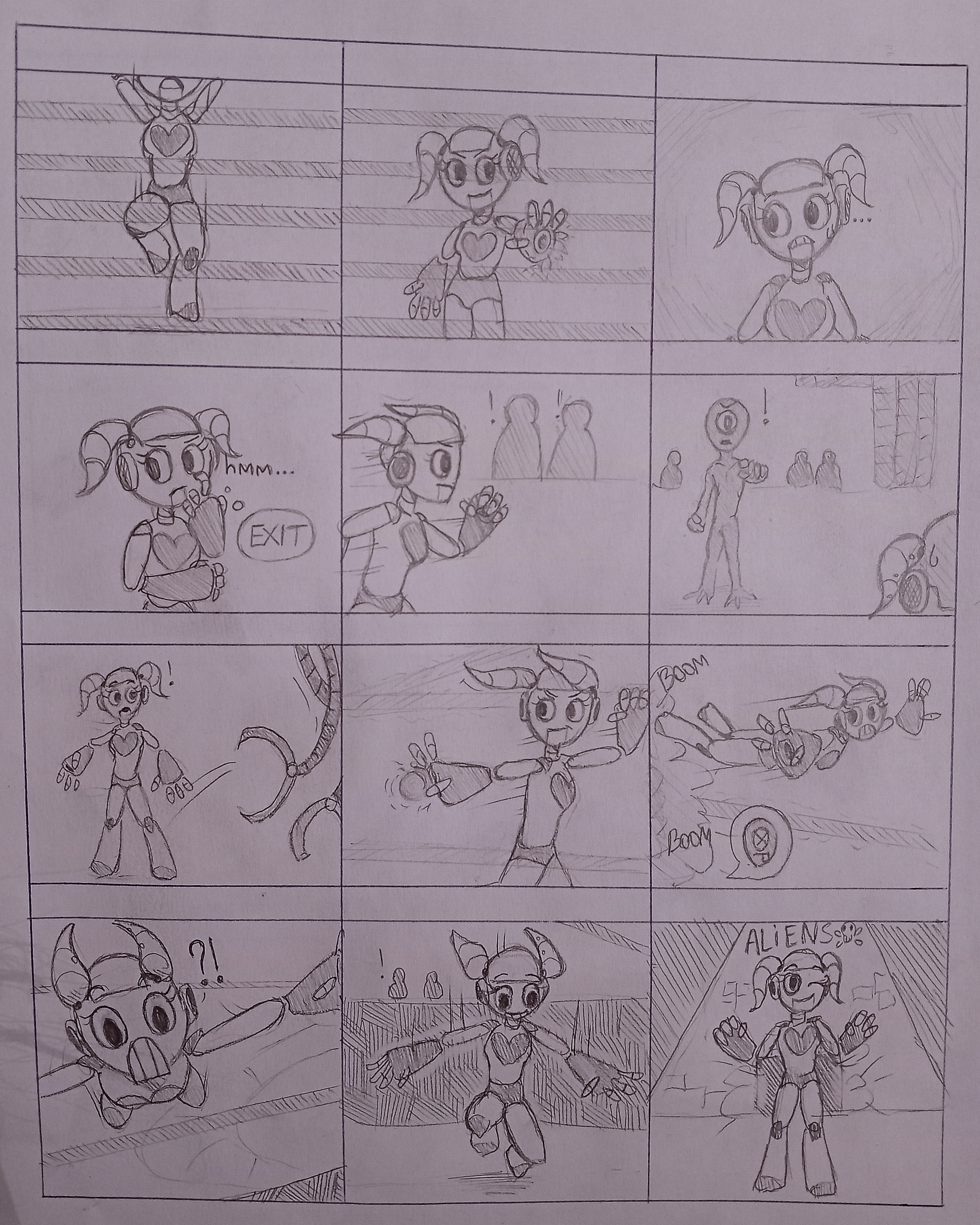 The protagonist is a female-identifying humanoid robot, created by future scientists to explore distant planets. During her journey through space, she was captured by deceitful aliens and held hostage. Now, it is time for her to break free!