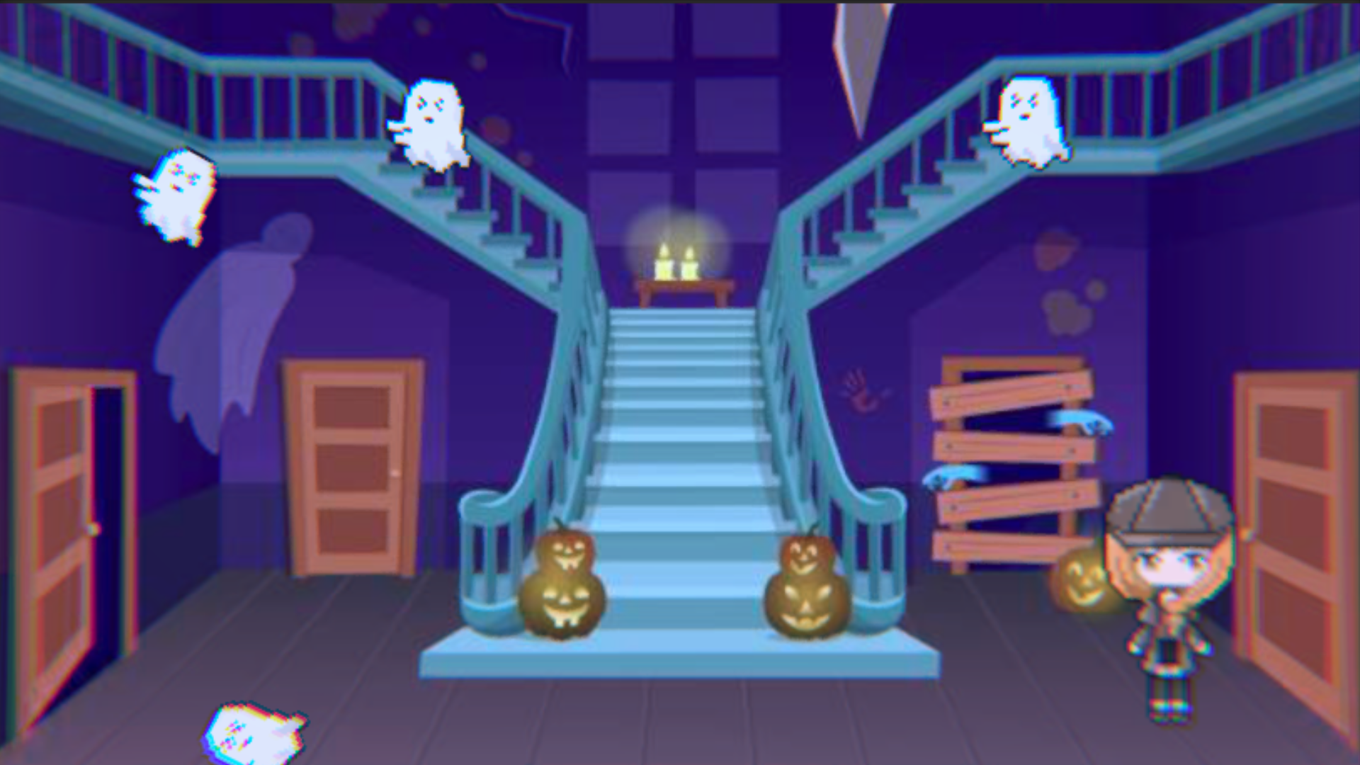 A girl is stuck in a mansion full of ghosts. Help her survive.