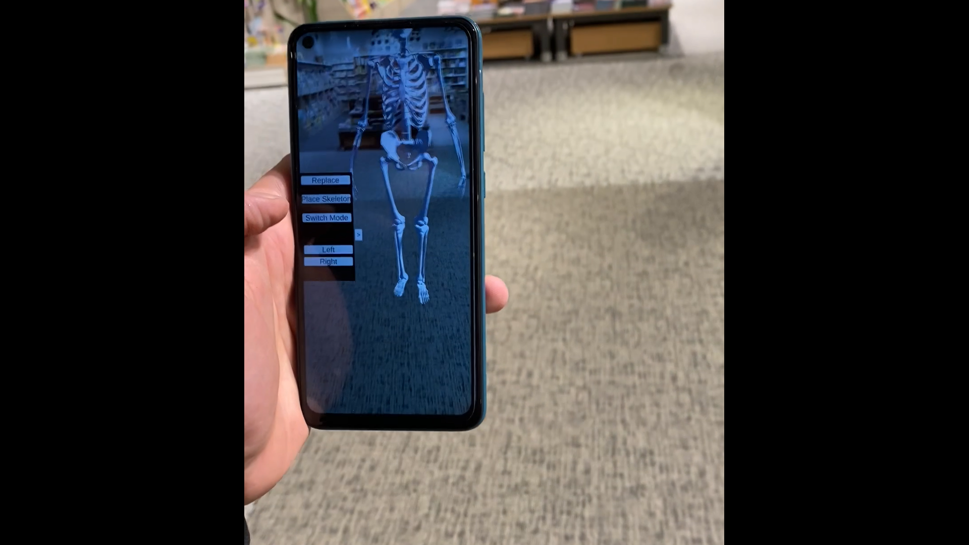 A full-size skeleton model can be placed on the detected plane.