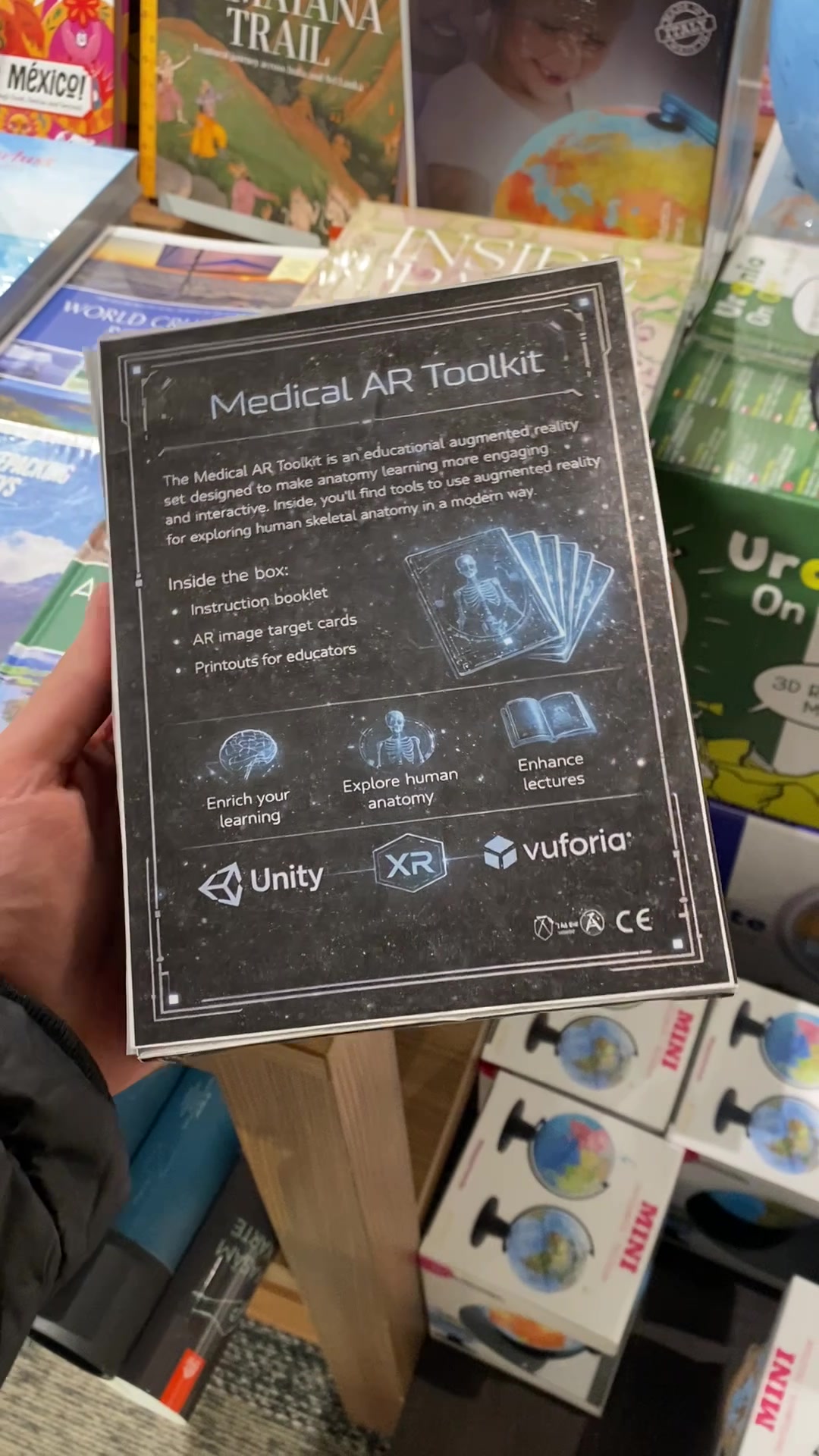 Medical AR Toolkit is an educational augmented reality tool that helps users learn human skeleton anatomy in a modern and interactive way. Instead of studying static images in books, students can view a 3D skeleton in the real environment, rotate it, and interact with individual bones.