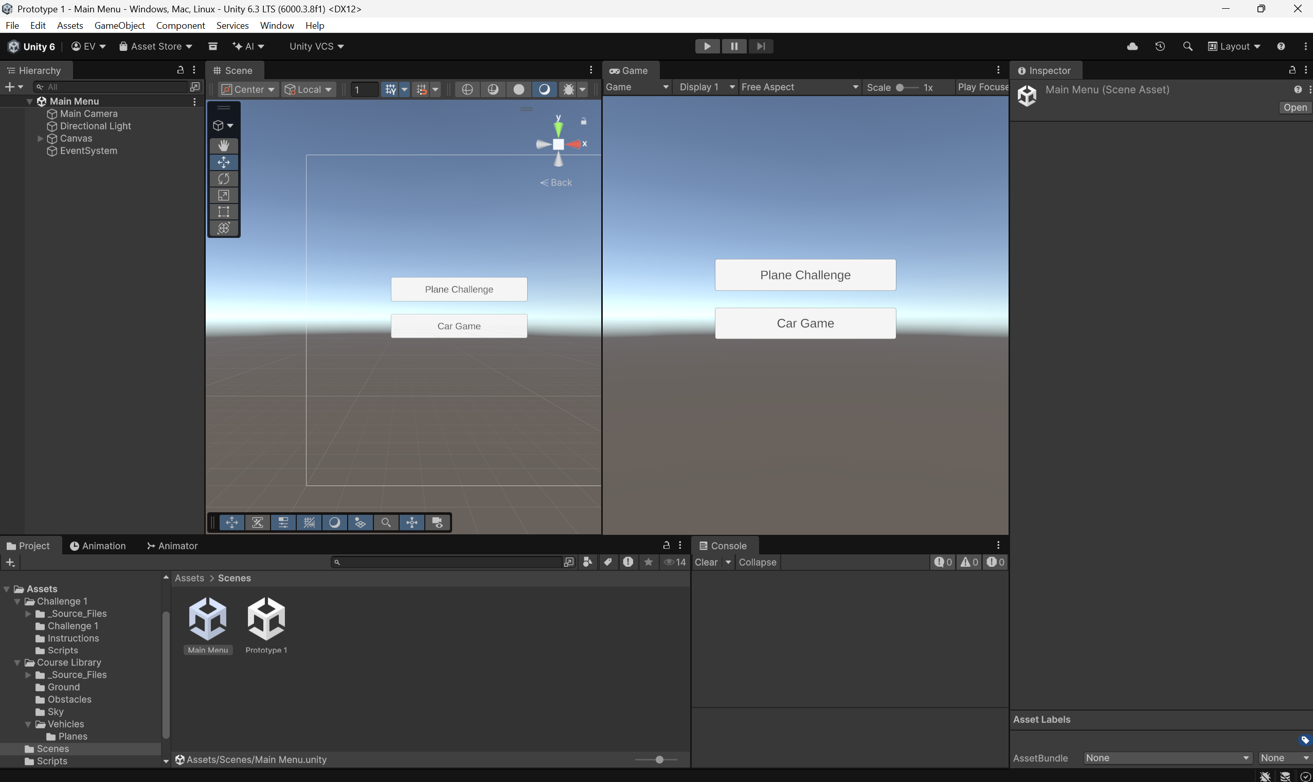 Car game prototype and Plane challenge