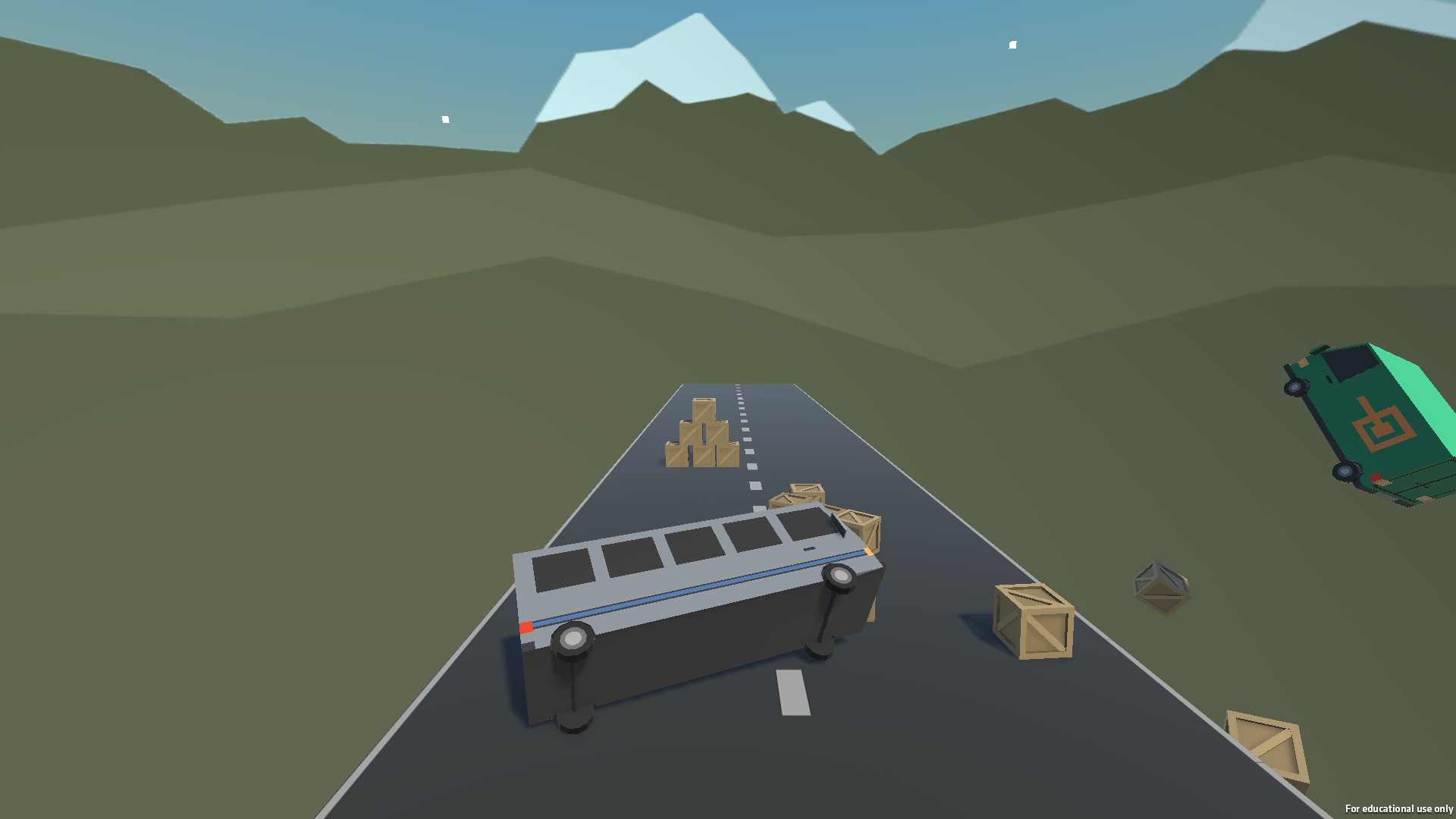 WS for driving forward/backwards AD for turning left/right SPACE for brakes and impovability C for different perspective R for Restart