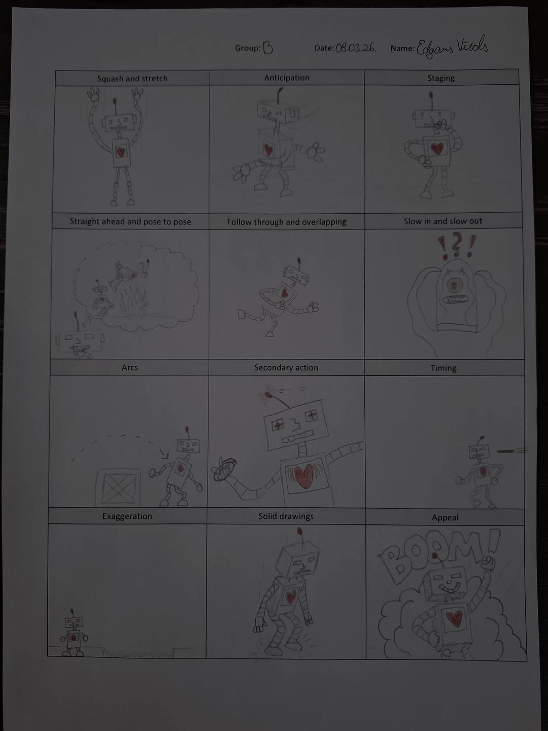 2 frame animation using the 12 principles of animation
