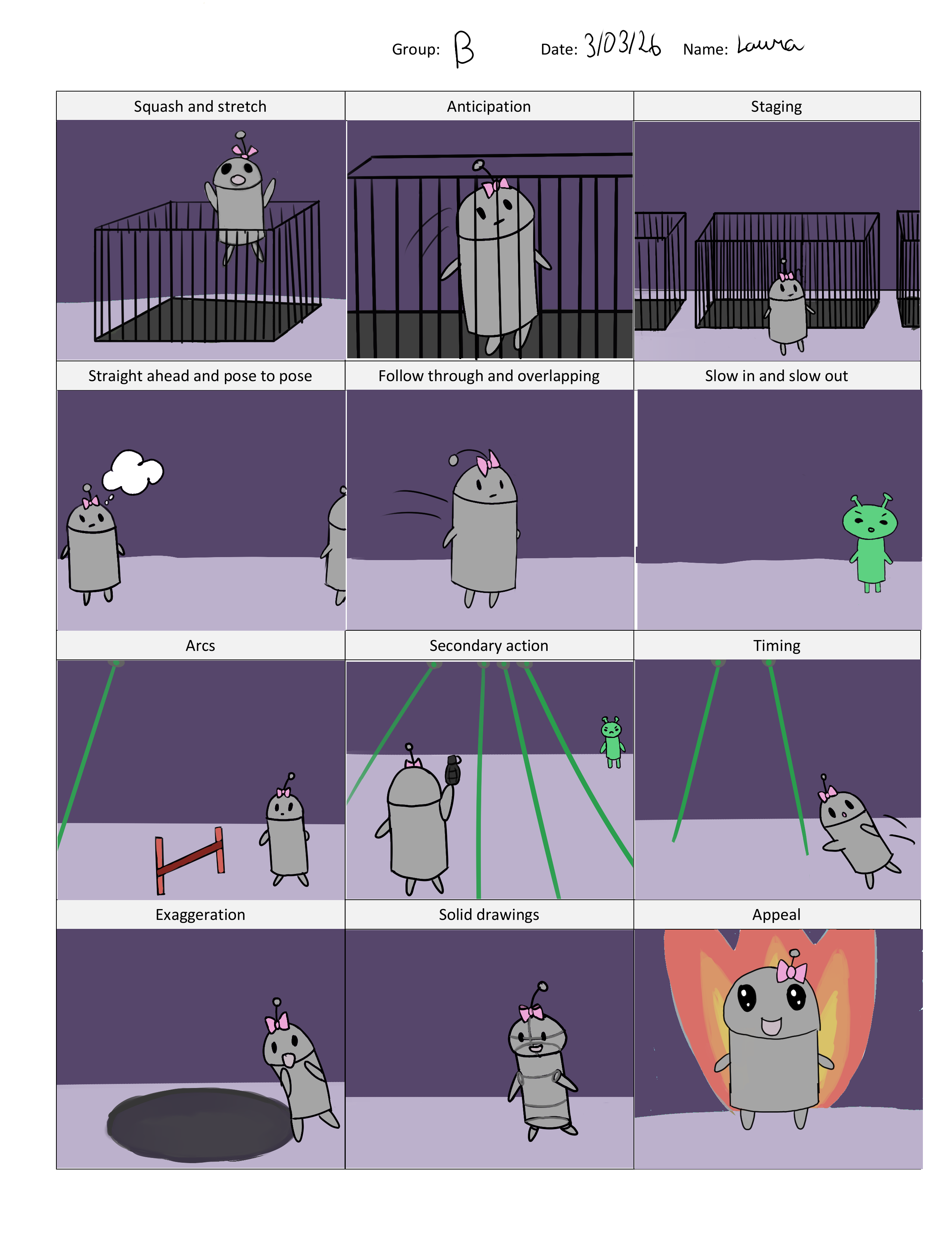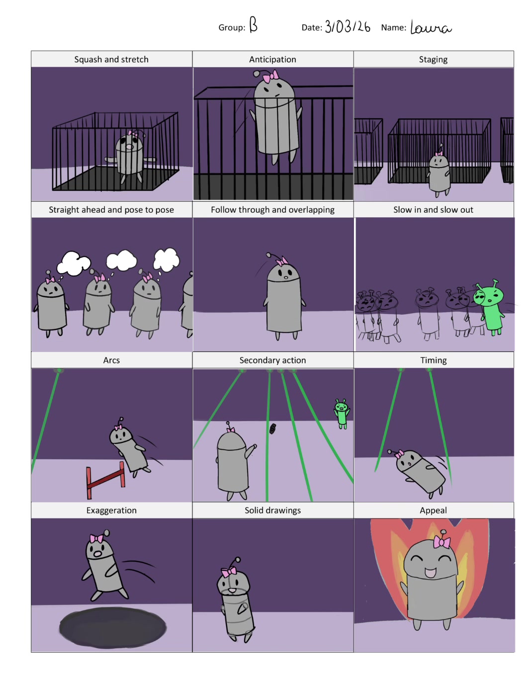 Story of a robot that represents the 12 animations principles