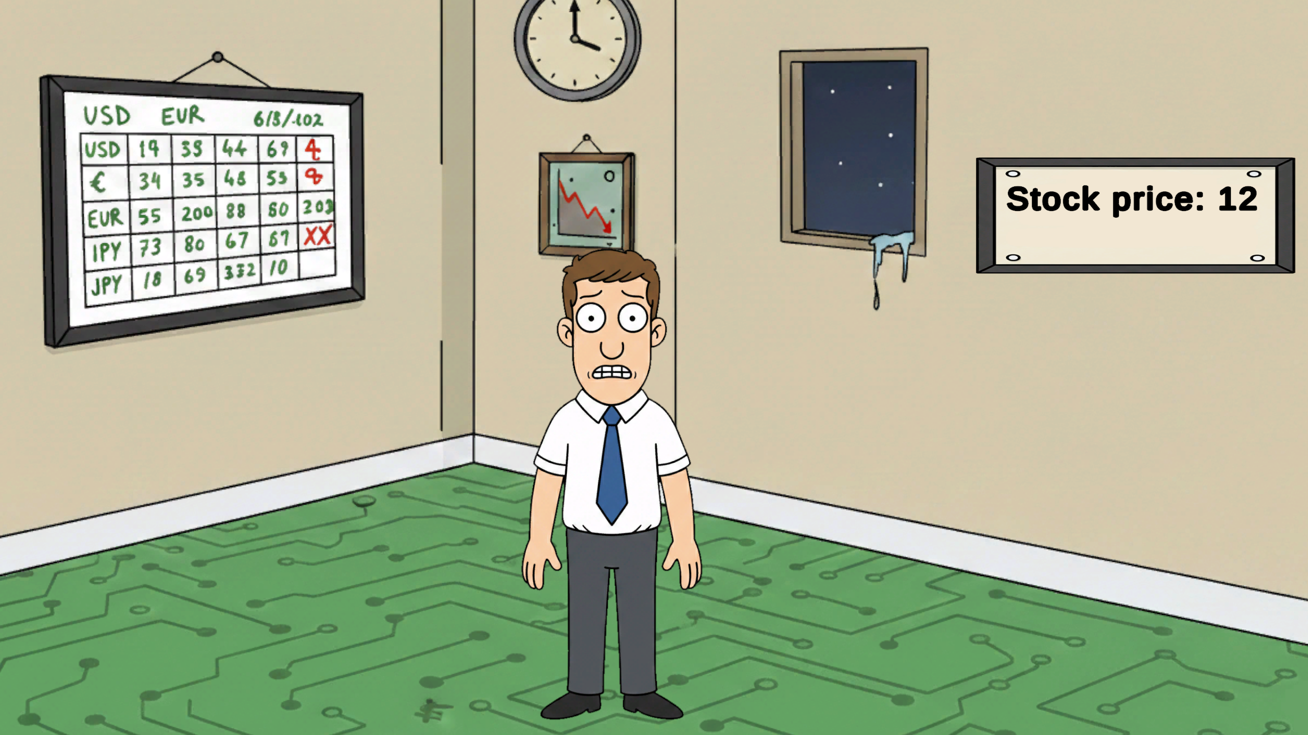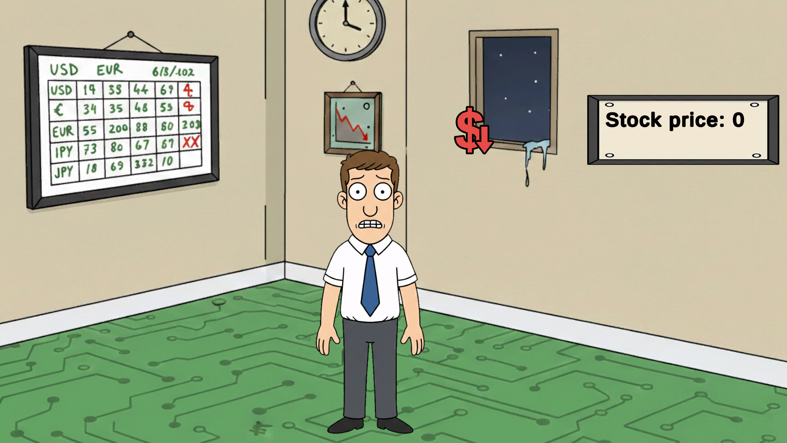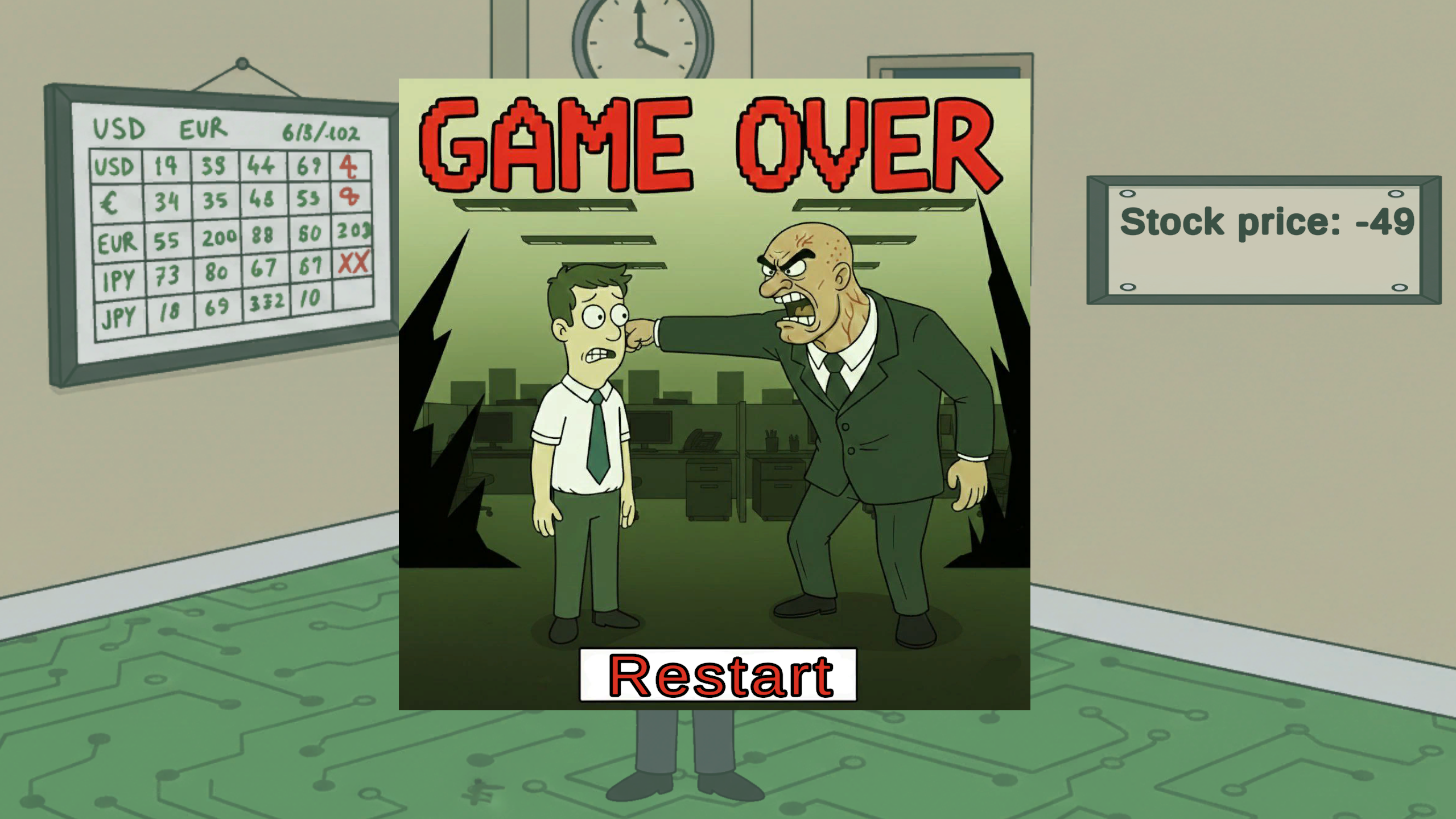 In this game, you must ensure the company's stock doesn't crash. Catch the good investments!