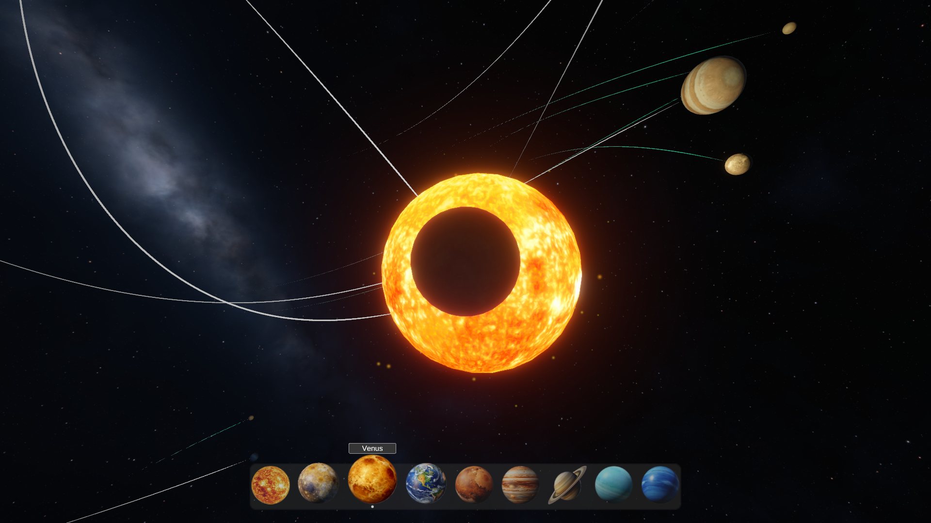 Controls: H - hide/show UI LMB - select planet Esc - exit