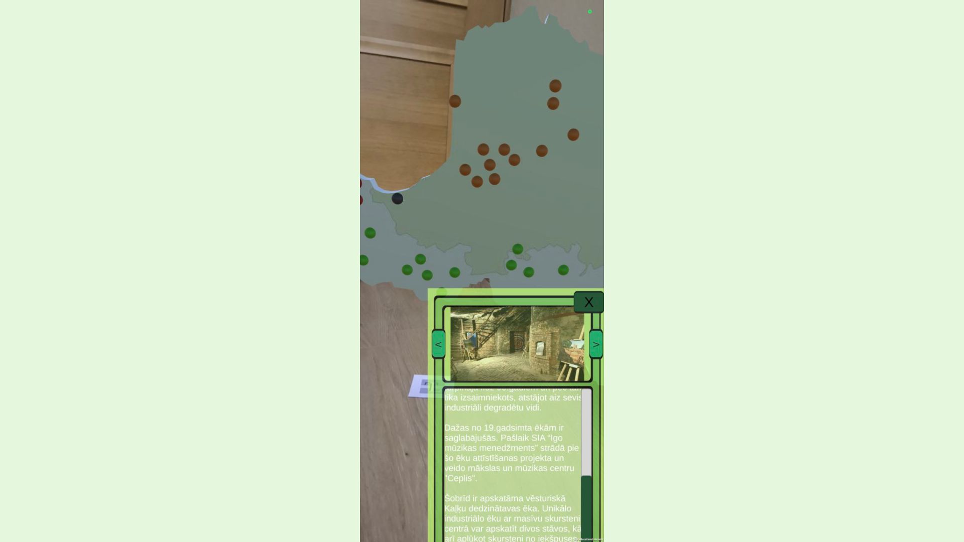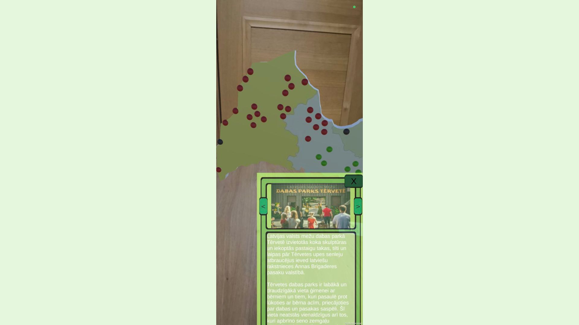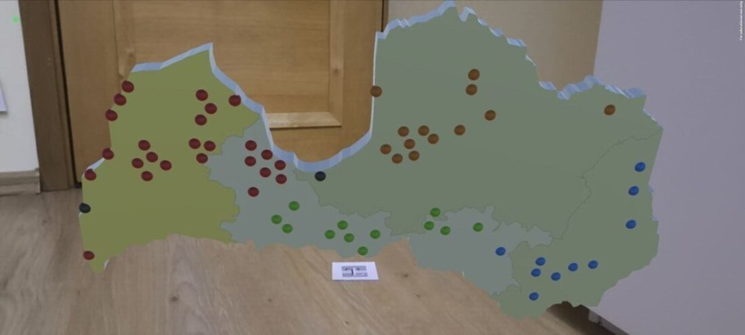 By pointing the phone’s camera at a special image, the user can see a three-dimensional map of Latvia with marked tourist attractions. Each point on the map represents an interesting location, including historical landmarks, natural sites, cultural places, and popular travel destinations. When a point is selected, an information window opens with a description of the location, helping users better understand its significance and features.