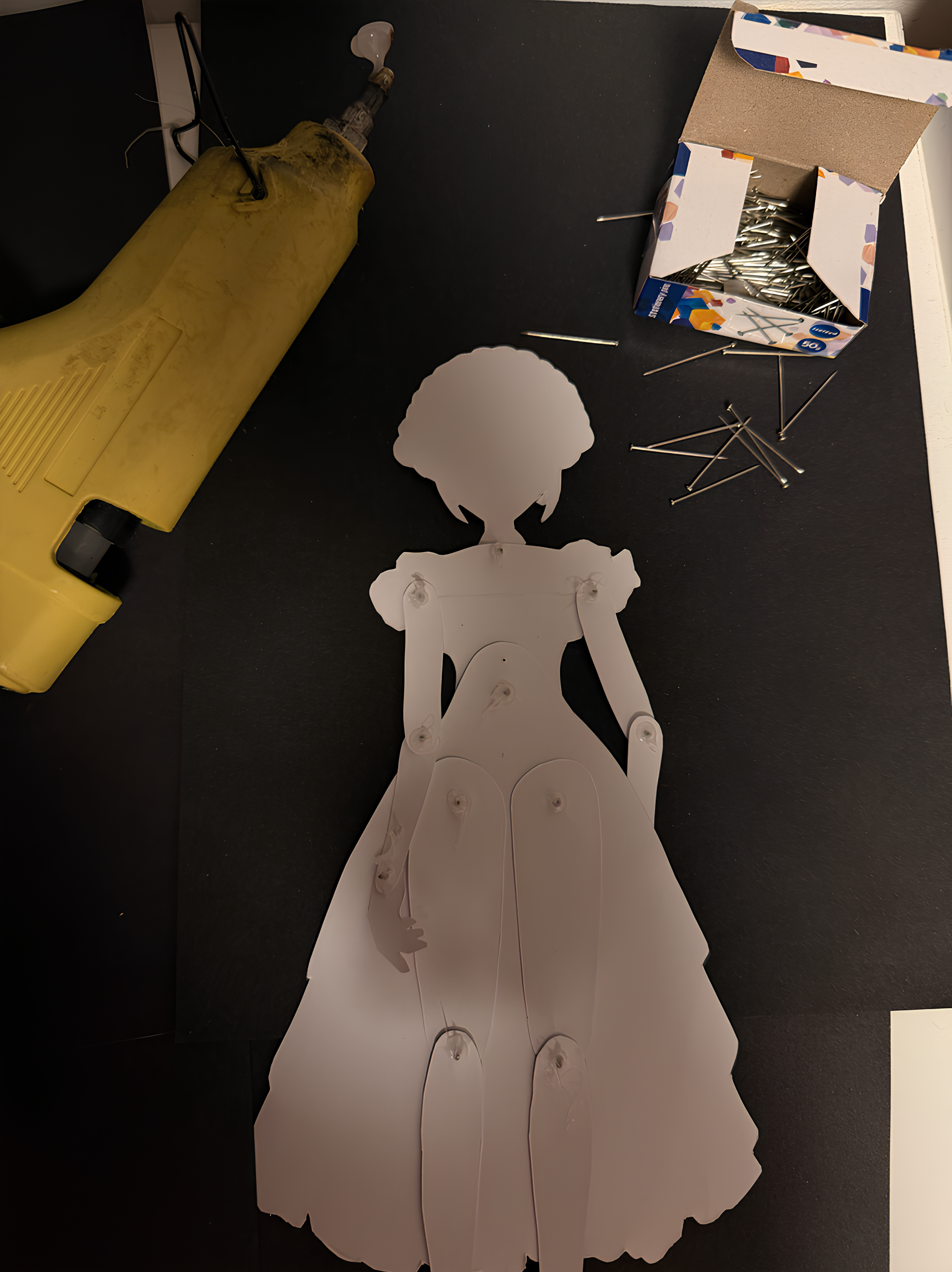 Lelle izgatavota no drukas papīra, ķermeņa daļas savienotas ar kancelejas spraudītēm (kustīgas locītavas)