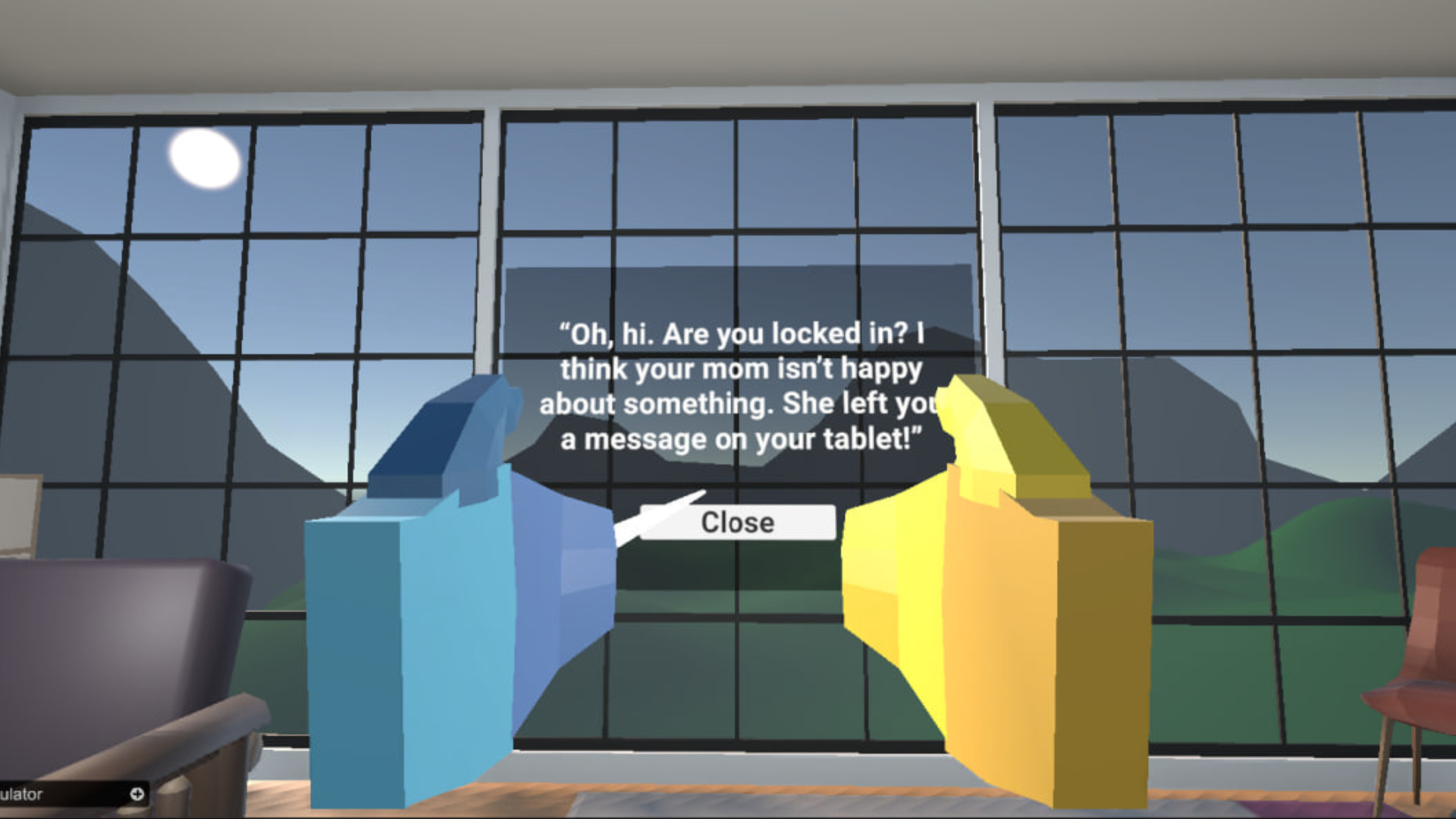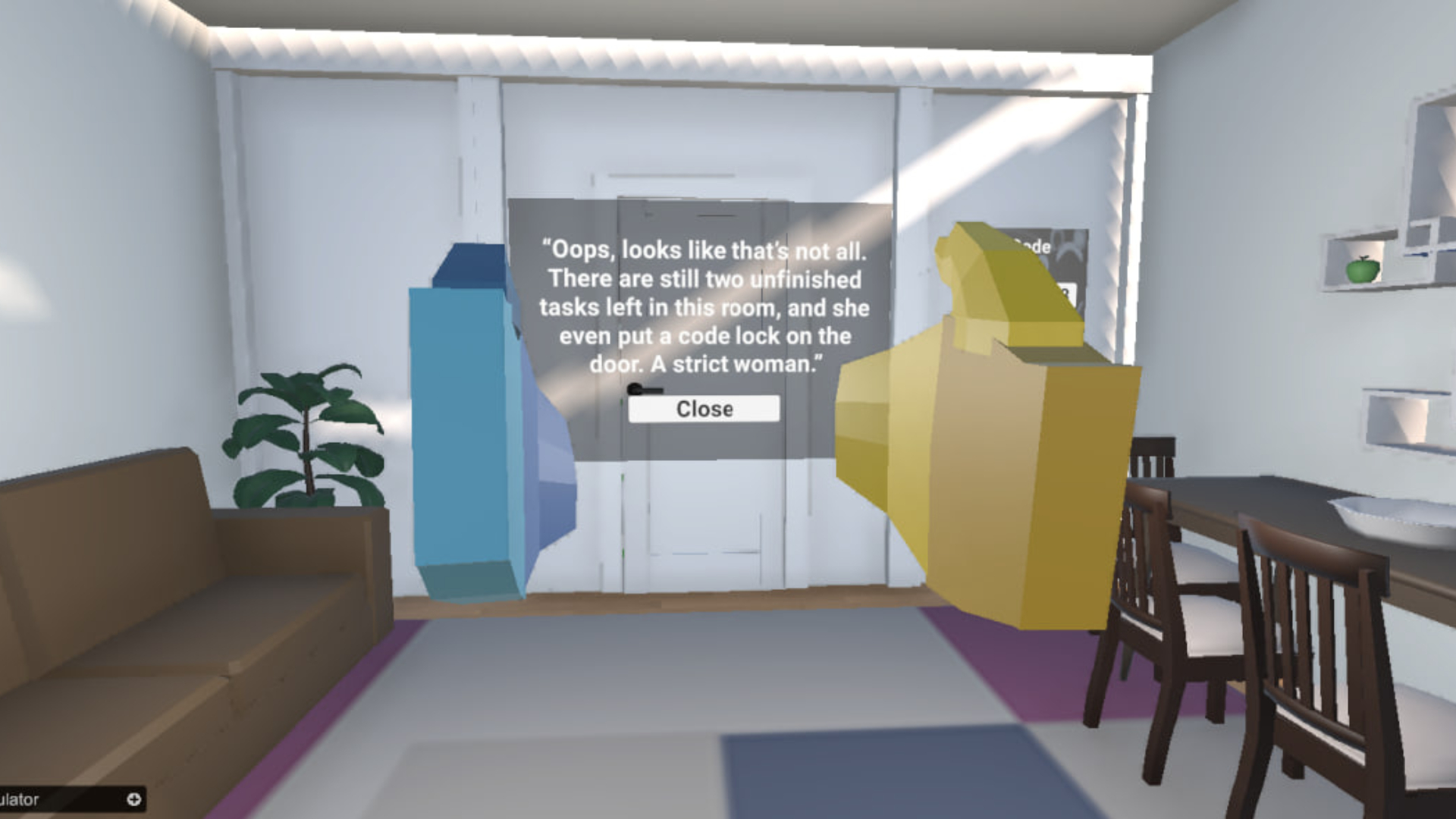 When he wakes up, he realizes that he is locked in his room. A small UI assistant appears in front of him and says that his mother has left him a message on the tablet he constantly uses to spend time with his friends. The mother’s message says that until everything is put back in its place, he will not be allowed to go outside to his friends. There is only one option left to clean the room.